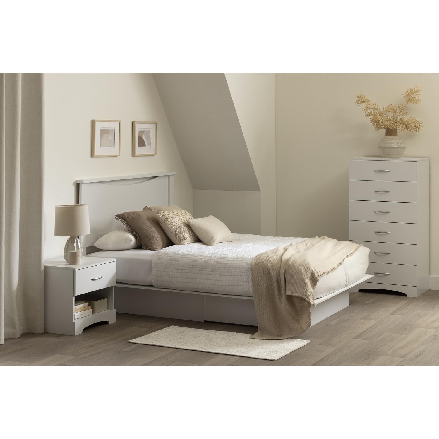 Details: Contemporary Lines And FinishThis Step One 6-drawer dresser has a timeless look and blends in easily with any decor. The contemporary lines are softened by the curved kick plate, and metal handles add character and value to the furniture. The neutral, modern style makes it suitable for men’s or women’s, providing plenty of storage space in this attractive piece of furniture. Practical Storage And OrganizationThis bedroom furniture collection was designed just for tighter spaces! Featuring 6 practical drawers with metal handles, the dresser provides plenty of room for clothes, linens or general storage. The drawer slides are made of metal and include dampers and catches. 5-Year Limited Shop with confidence knowing that we proudly stand behind this Step One Dresser with a full 5-year limited . Assembly is required. The packaging is tested and certified to reduce the risk of damage during shipment. We recommend 2 people to assemble. The back is not laminated and the accessories are not included. Made in North America with non-toxic laminated particleboard. Wipe clean with a dry cloth. South Shore Furniture's support team is available 7 days a week if you have any questions.