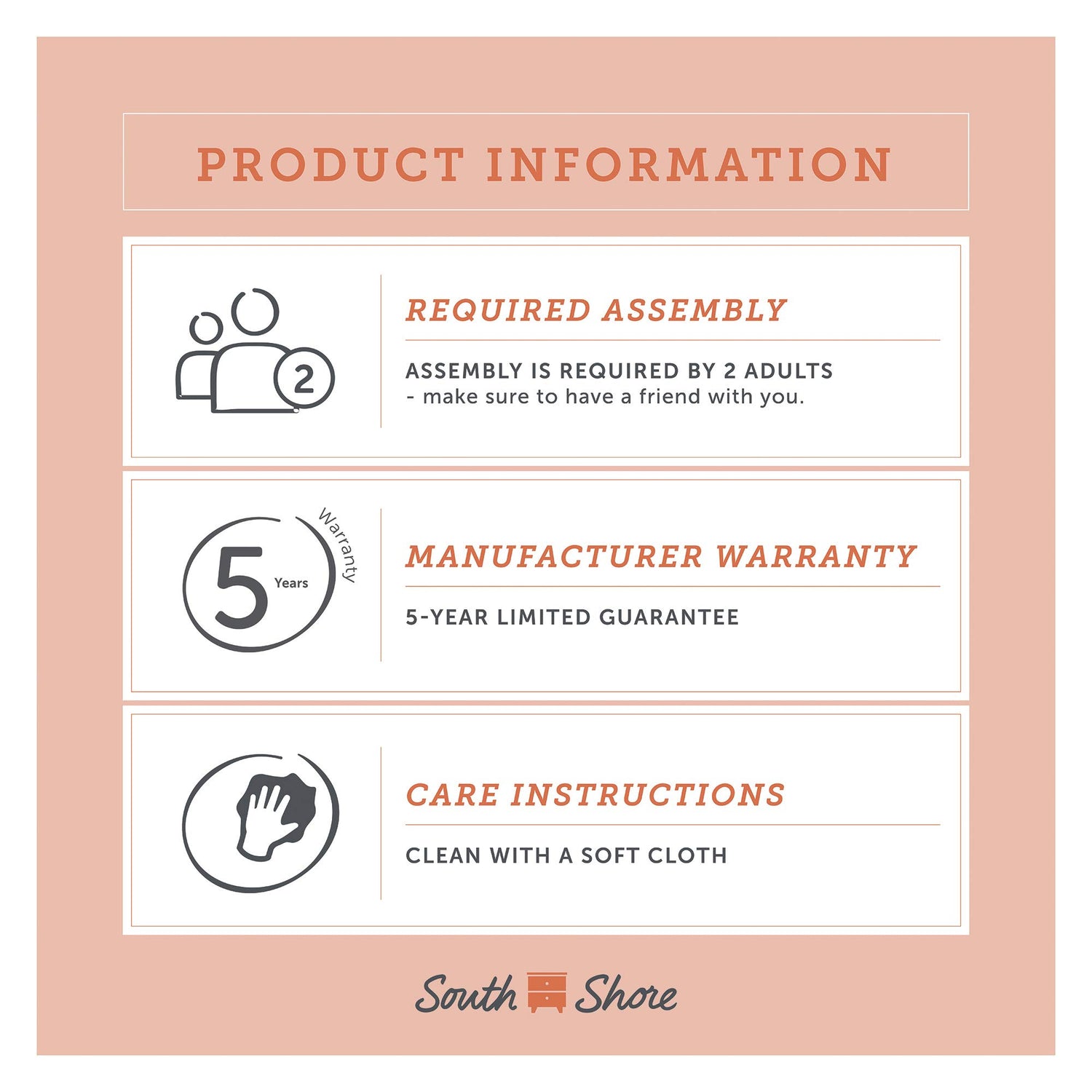 • 5-YEAR LIMITED GUARANTEE: South Shore is proud to stand behind this 5-drawer chest dresser with an exclusive 5-year limited guarantee. Shop with confidence knowing your purchase is always covered.