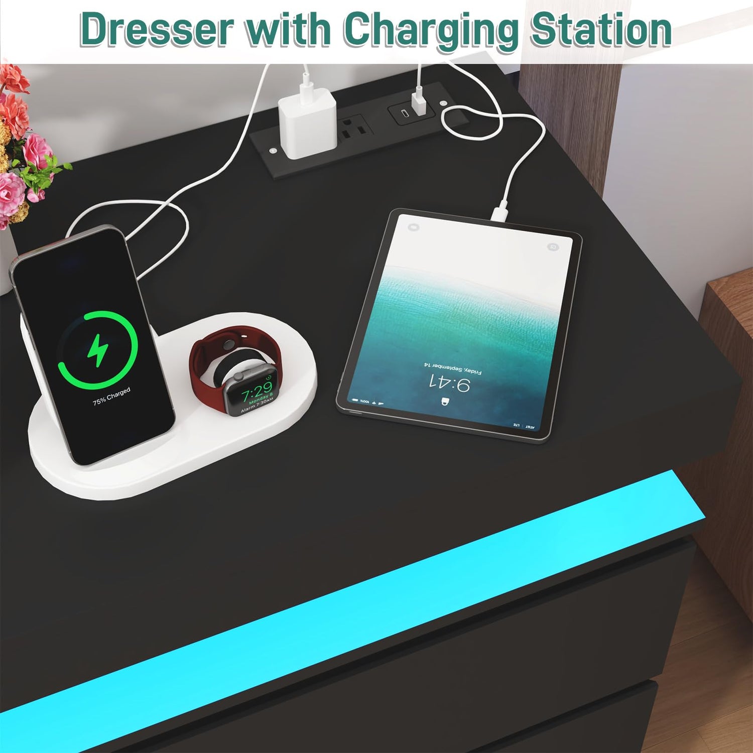- 【Built-In Charging Station】 This bedroom dresser with power outlet, featuring 2 AC outlets and 2 USB ports. Charge your phone, laptop, or small appliances effortlessly—ideal for bedrooms or rooms with limited power access.