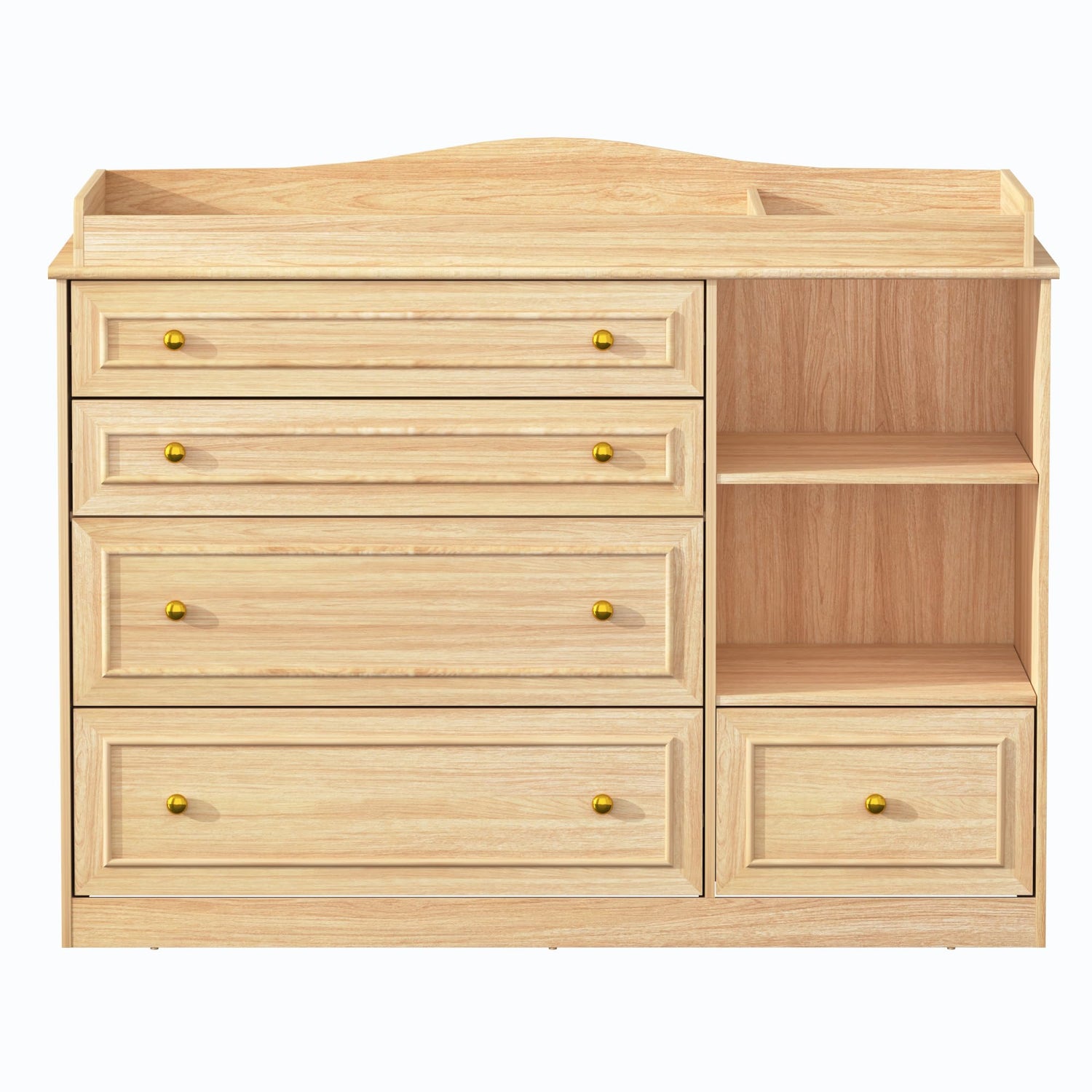 St.Mandyu Wood Changing Table Dresser, Baby Nursery Dresser, Baby Diaper Changing Table, 5 Drawers, Adjustable Shelves, Metal Handle, Curved Wrapping Design, Nature