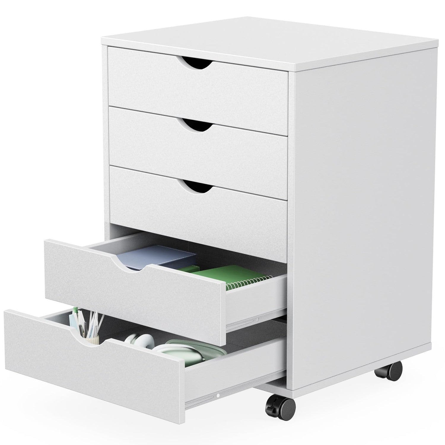 Sweetcrispy 5 Drawer Chest Mobile Storage Cabinets Small Wooden Dresser with Wheels Room Organization Furniture for Office Home, White Wood