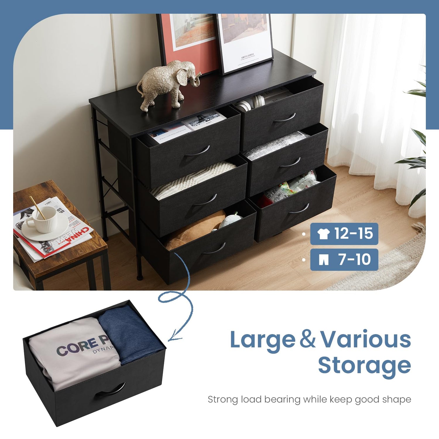 • [Sturdy & Safe Construction] - Made with a durable metal frame, wood top, and anti-tip features, this dresser for bedroom and TV stand ensures stability and safety. The 6-drawer fabric console table is equipped with 4 height-adjustable feet can protect floors and adapt to uneven surfaces.