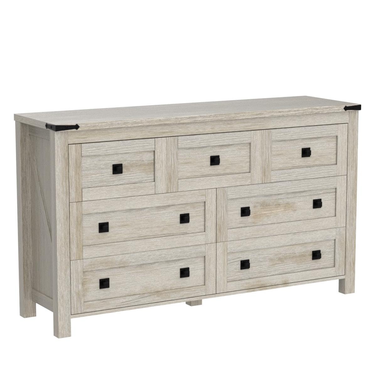 - 【Wooden Farmhouse 7 Drawers Dresser TV STAND】Rustic wooden 6 drawer dresser with barn door style and spacious design is a perfect combination of modern and farmhouse style, adding character and charm to your bedroom and living room. Can be used for TV Stand for 60'' TV/clothing organizer/lingerie dresser,entryway table, accent storage cabinet for living room.
