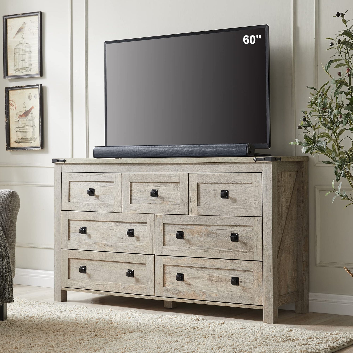 T4TREAM Farmhouse 7 Drawers Tv Stand, Wood Rustic , Storage Dressers Organizer for Bedroom, Living Room,Hallway, Light Rustic Oak