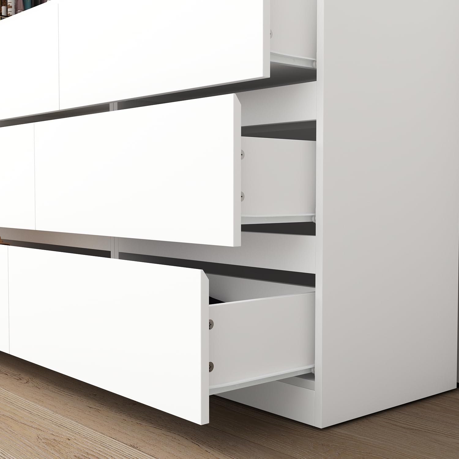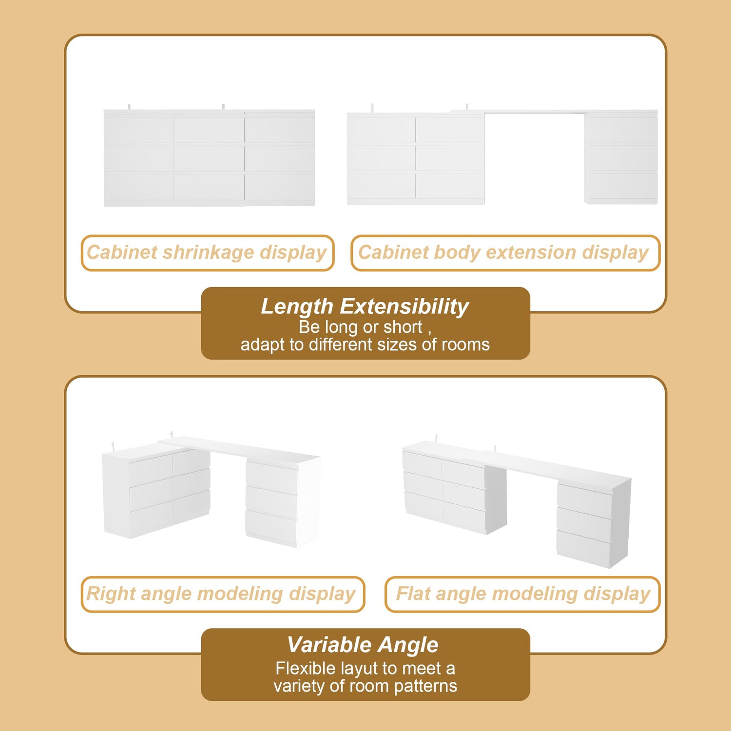 - L-shape Design - This dressing table features L-shaped design, maximizing storage while optimizing space in your bedroom or dressing room. The desktop can align with drawer top to function as a 9 drawer dresser. It can also extend to a maximum length of 102.4 inches (70.9” + 31.5”). Clean lines and space-saving design highlight modern appeal, which is suitable for most home decors.