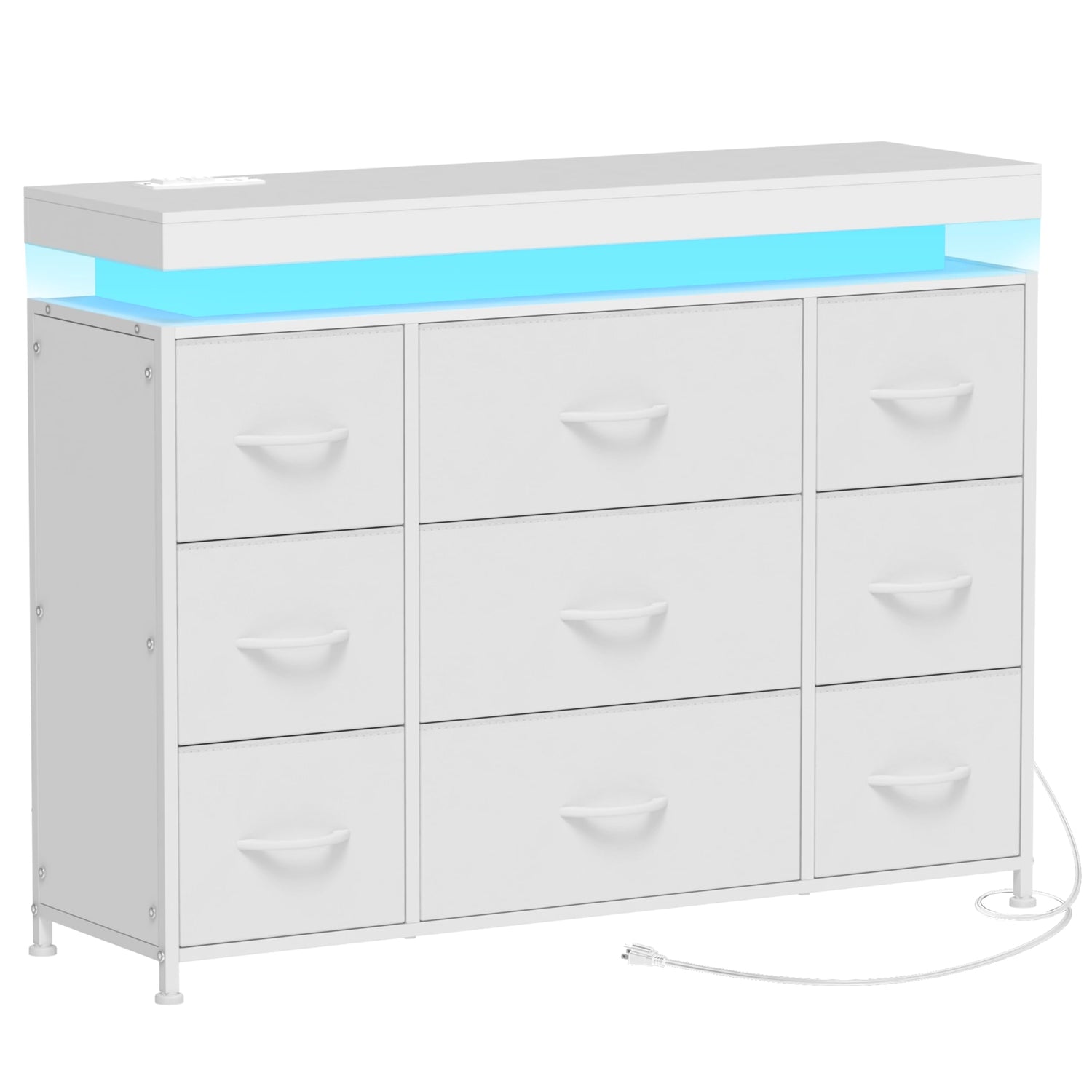 Details: Tohomeor 9 Drawer Dresser with Power Outlet & LED Lights, Modern Chest of Drawers for Closet, Fabric Drawers Organizer Cabinet TV Stand for Bedroom, Living Room, Entryway, Hallway