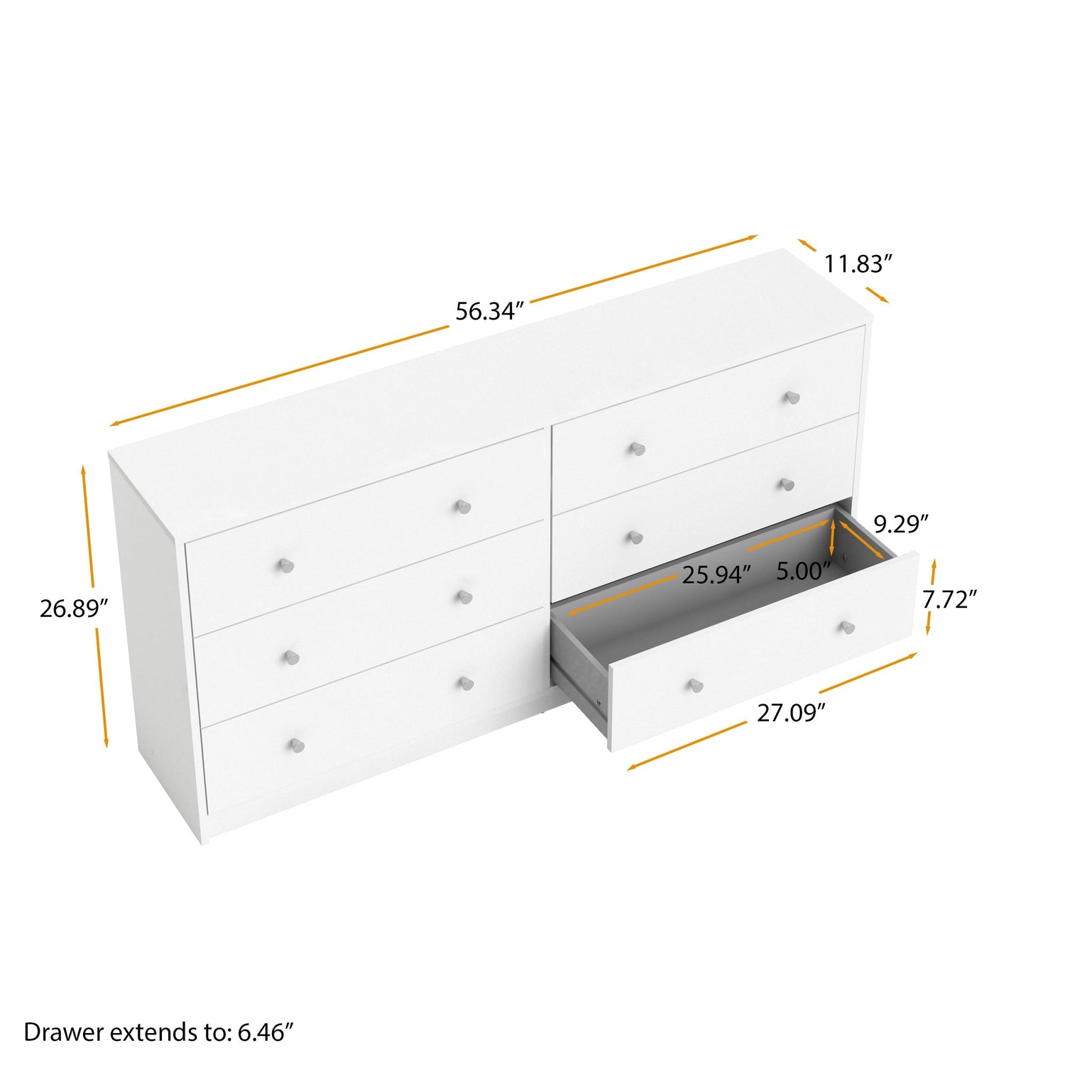 Details: Organize your wardrobe with the Portland 6 Drawer Double Dresser. The simple, sophisticated design features six drawers with high sides, clean lines and a smooth finish. Equally suited for the kid’s room or master bedroom, the double dresser is a versatile piece of furniture, offering roomy storage for all your organizational needs. The Portland 6 Drawer Double Dresser is traditional Danish design and produced with a fade resistant foil surface, which is easy to clean. Combine this chest with coordinating Portland items to complete the look.