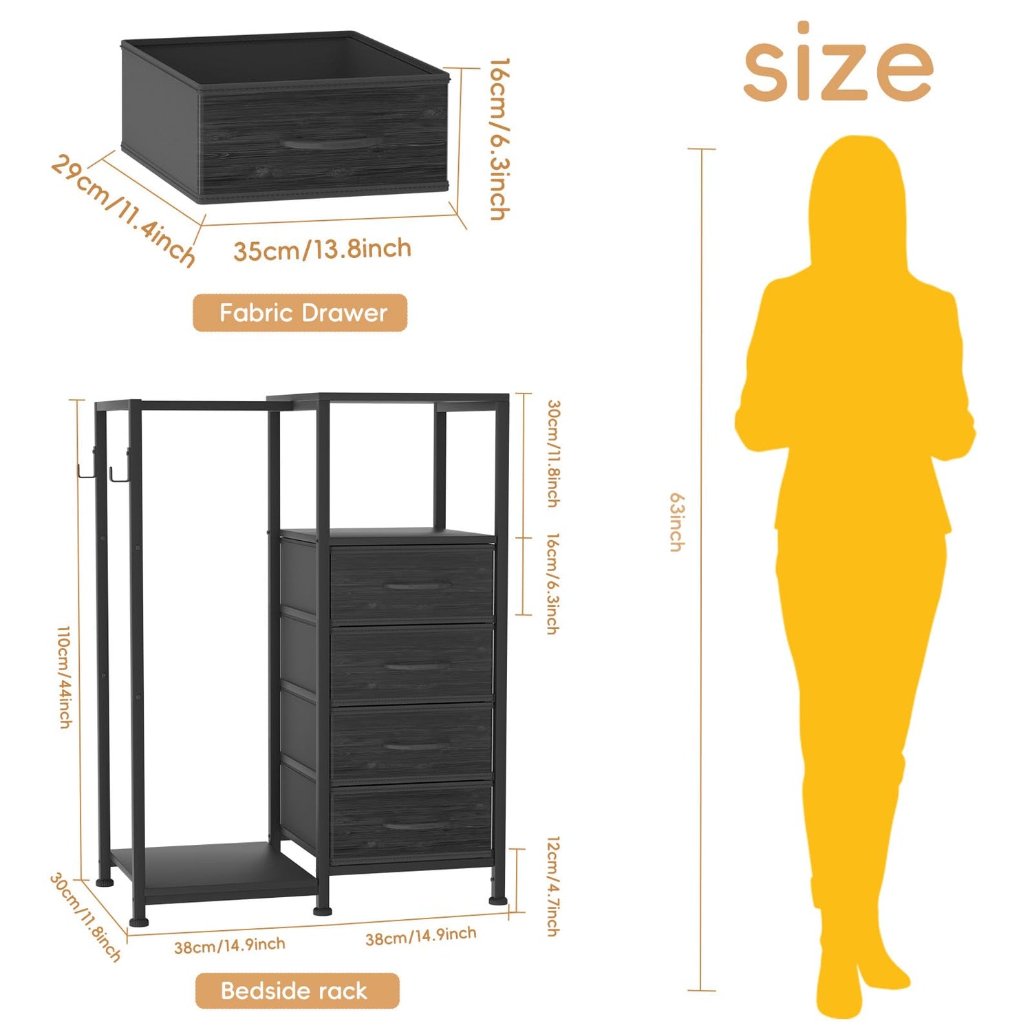 VERONLY Dresser with Hanging Rack, 4 Drawers Small Closet for Bedroom, Reversible Fabric Kids Chest of Drawers with Clothes Rack, Tall Storage Tower, Sturdy Frame, Black, 44''H