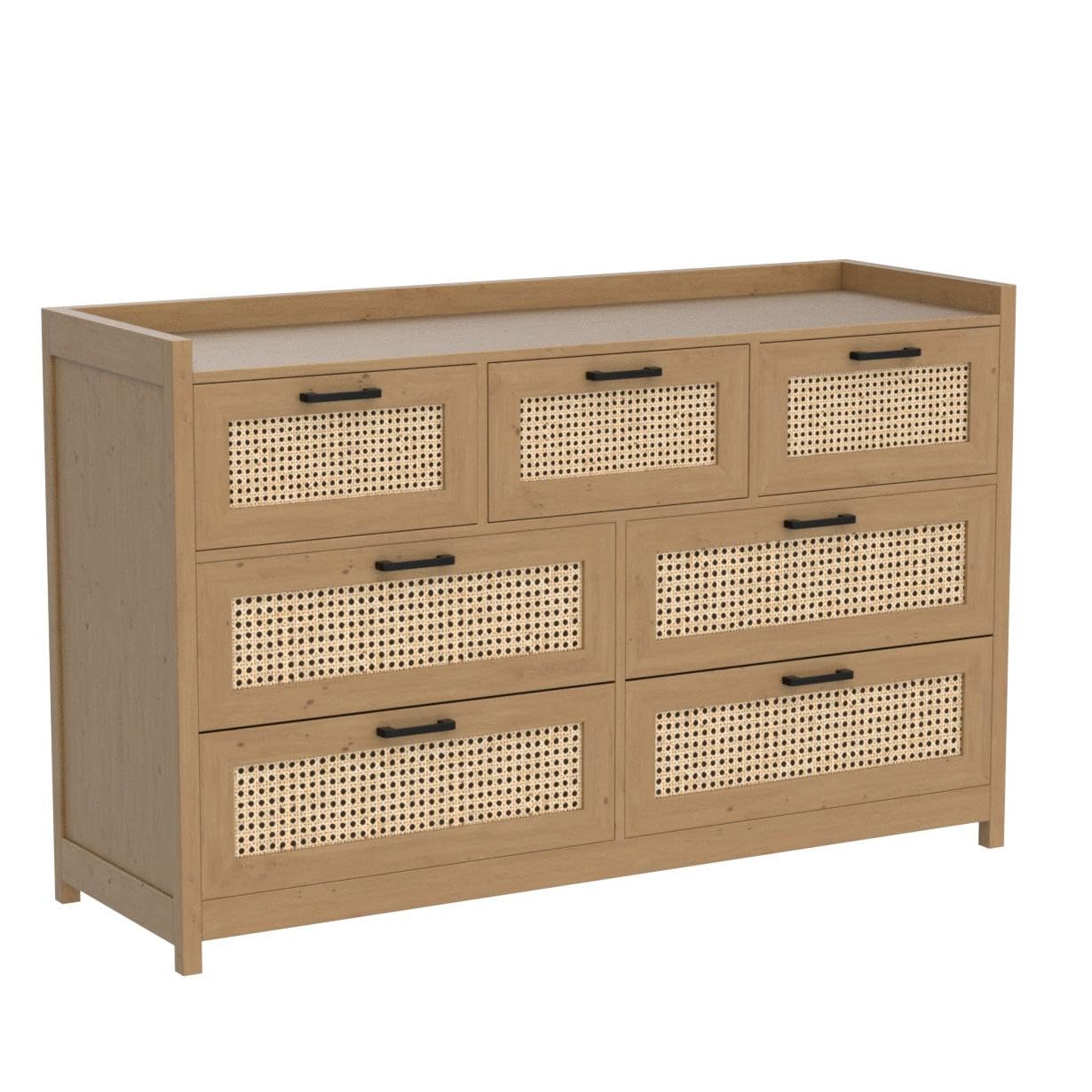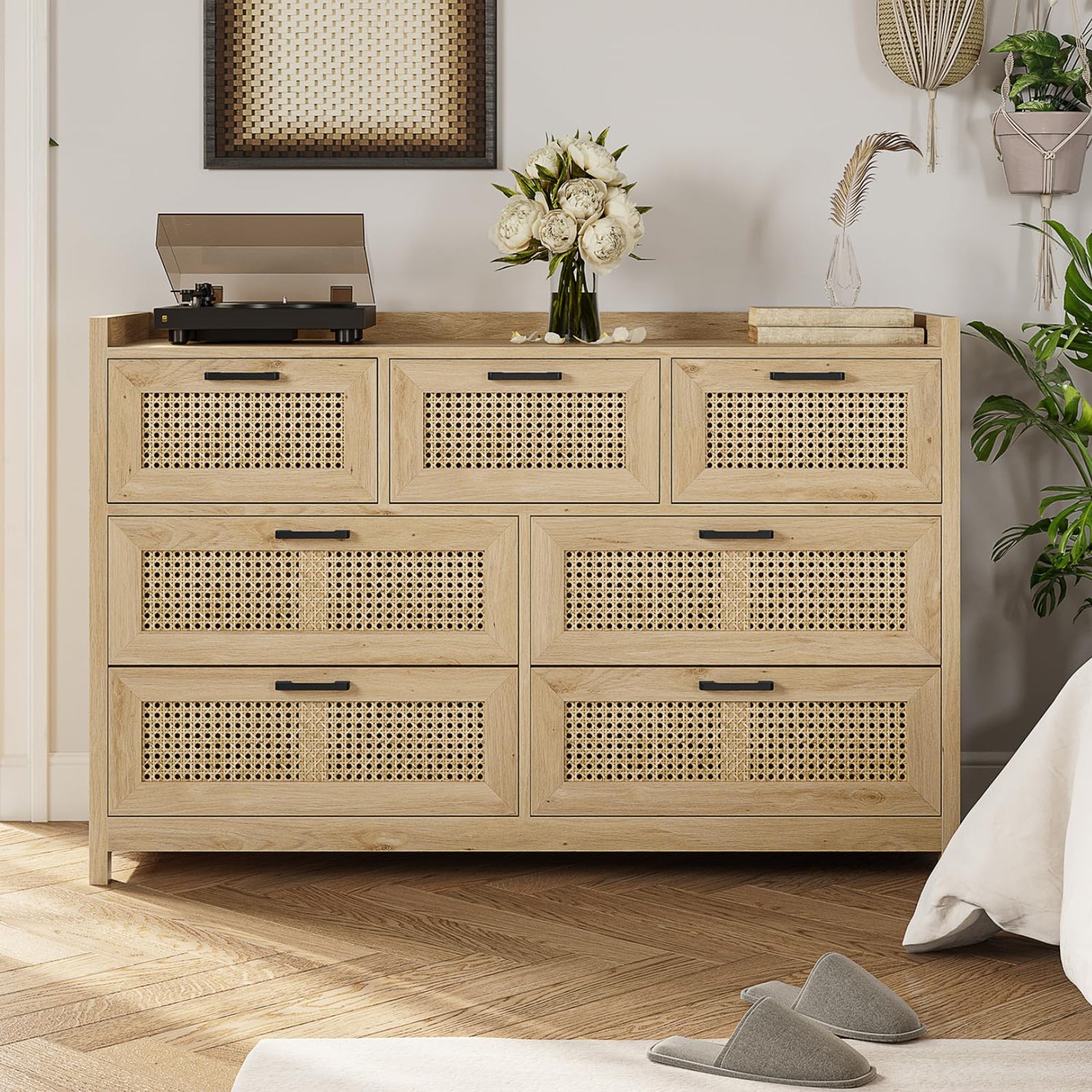 - 【7 Drawers Dresser with Rattan Doors】The rattan decorative door of the bedroom dresser is hand-woven with traditional octagonal rattan weaving technology. It is tough and elastic, allowing air to circulate freely and adding a natural taste. The paint-free process allows you and your family to breathe healthily. The surface is smooth and easy to clean, no additional care is required.