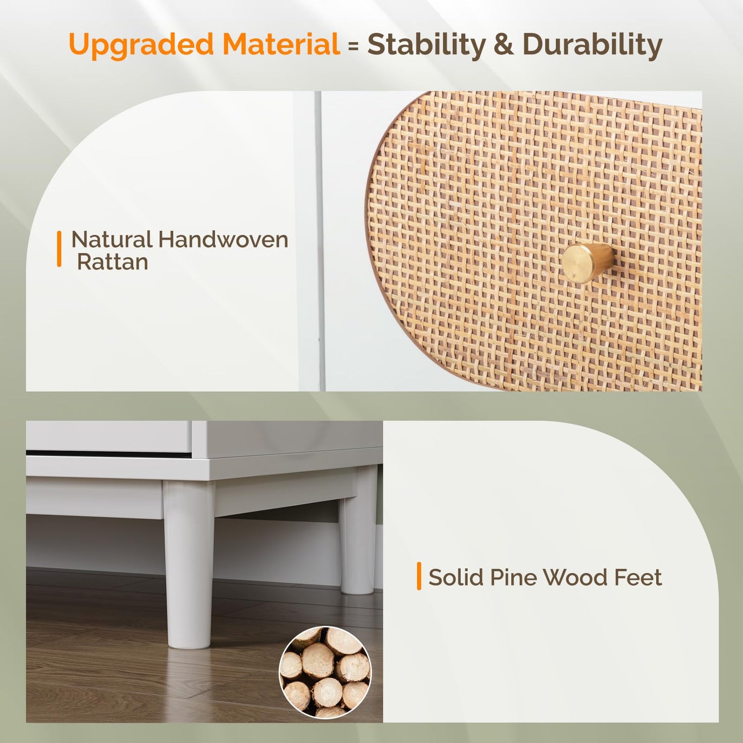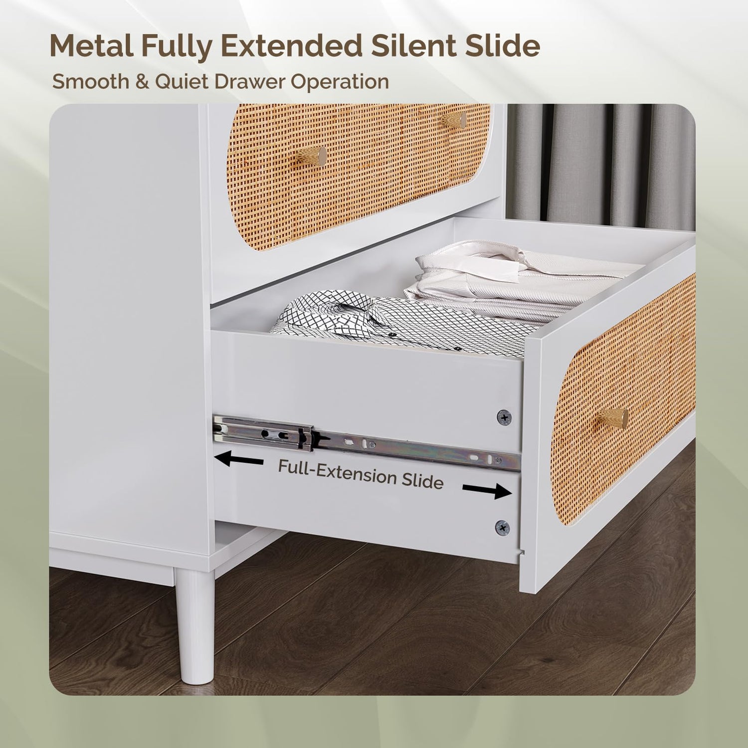 - 【Chic Boho Chest of Drawers】The use of natural wicker in the elliptical-shaped drawer front panel and round metal handles adds a touch of elegance and softness to the overall design, making the rattan drawers chest a perfect addition to any bedroom decor.