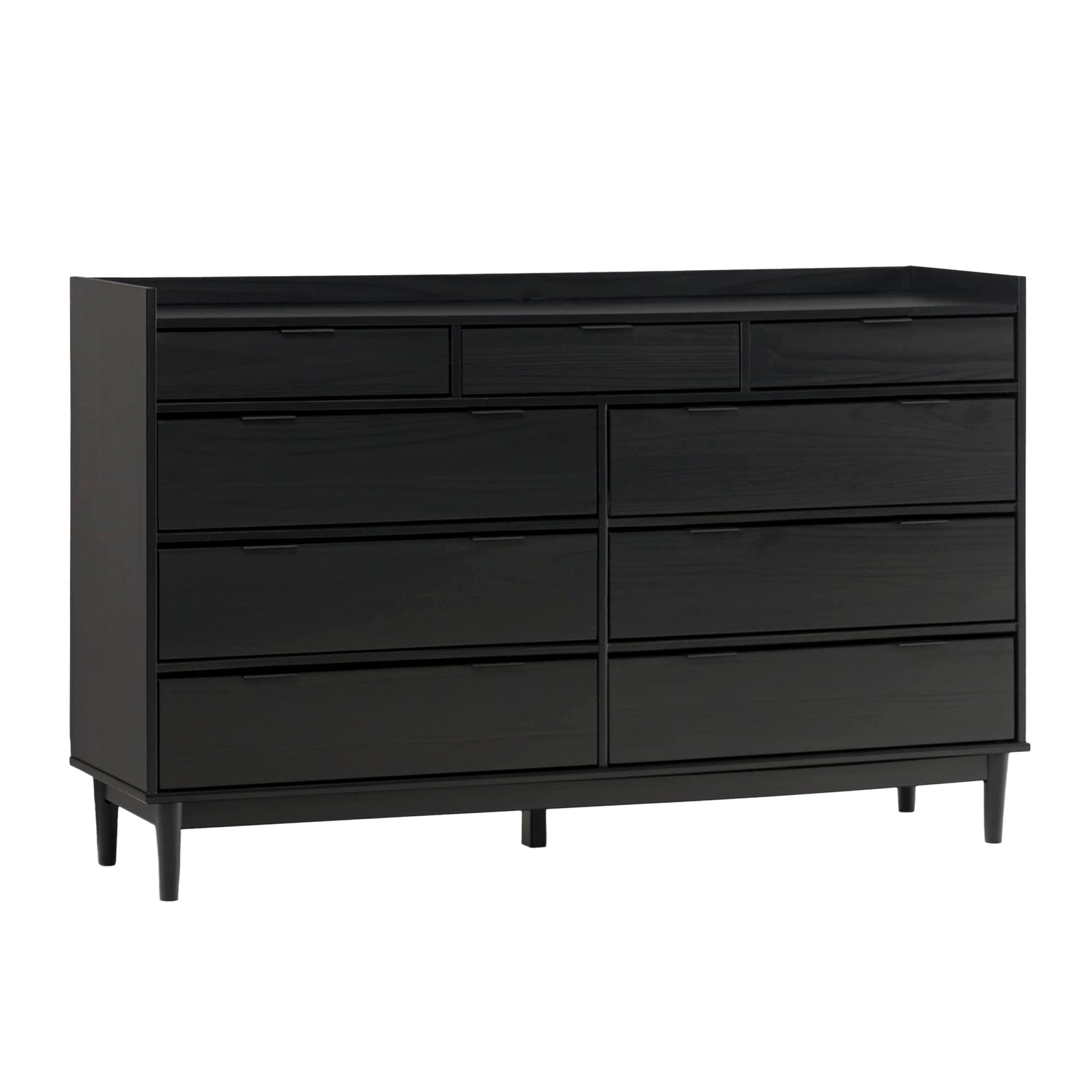 Walker Edison Blythe Mid-Century Modern Tray-Top Solid Wood 9-Drawer Dresser, 60 Inch, Black