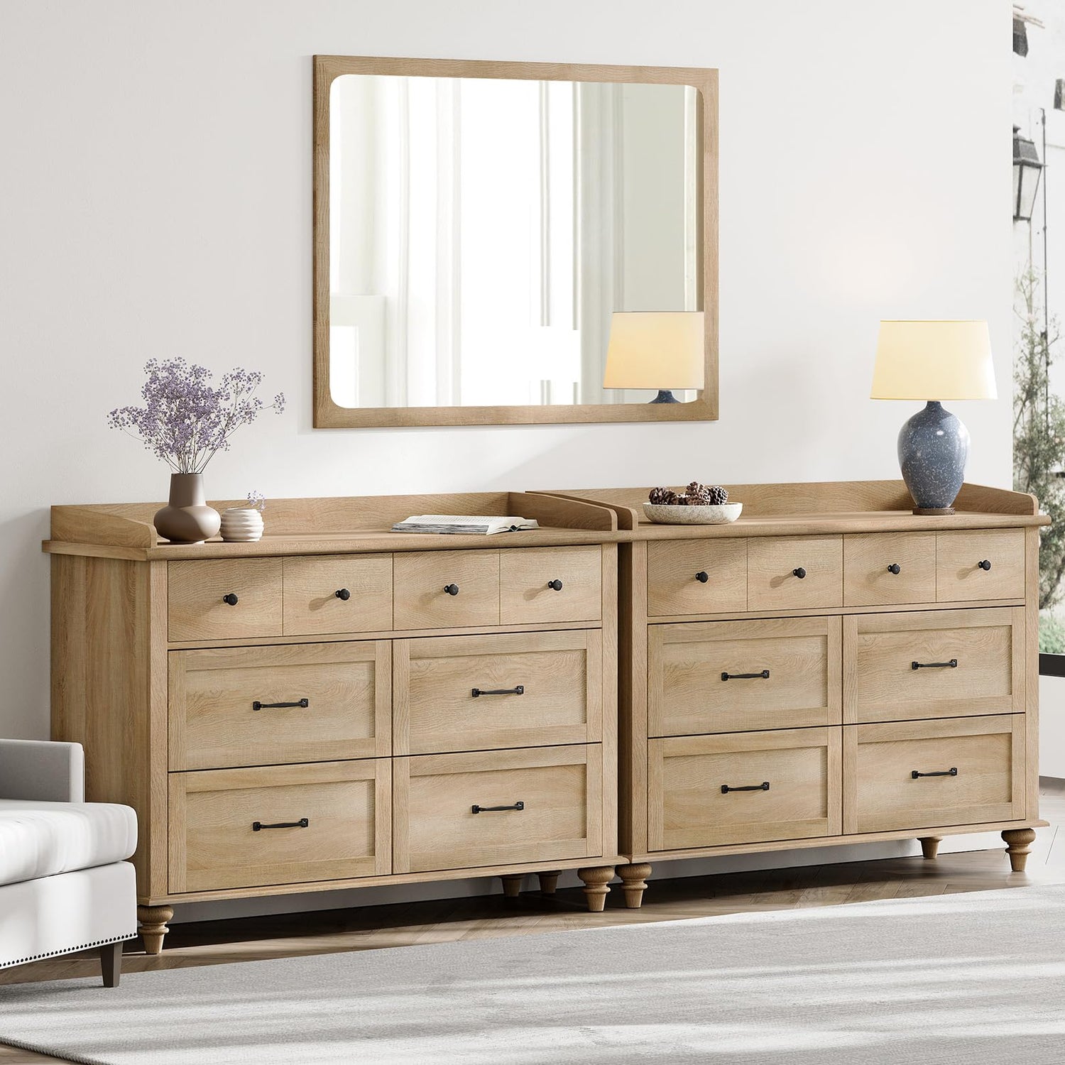 WAMPAT 12 Drawers Dresser for Bedroom, Set of 2 Farmhouse Dressers with 6 Drawers, Light Wood Kids Dresser for Closet, Wide Dressers Organizer for Living Room & Hallway, Oak