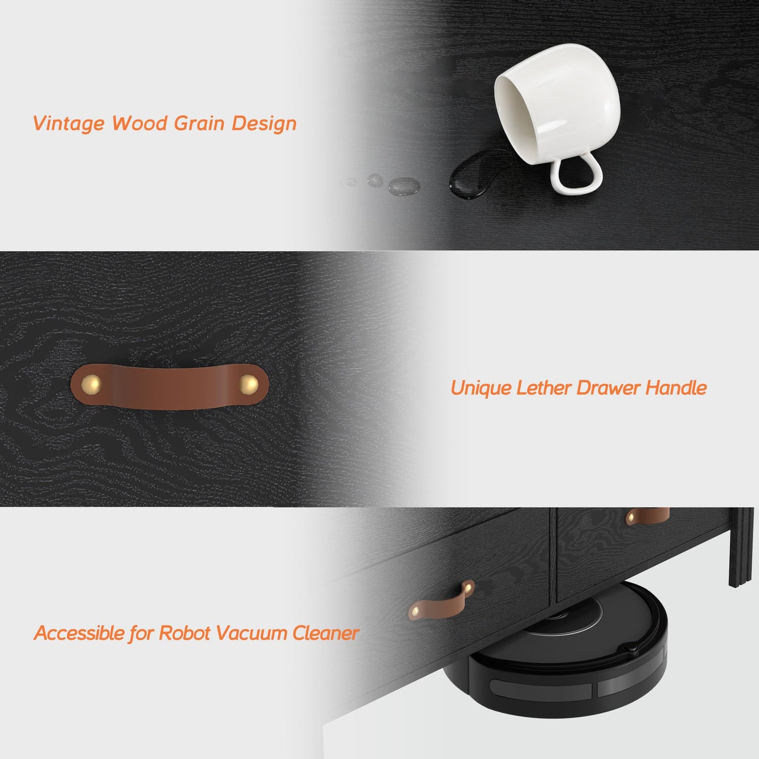 - 【Classic & Exquisite Design】Featuring natural wood grain surface, the black large dresser will add gorgeous attraction to your room. Additionally, the unique leather drawer handles offer more elegance. With compact and practical design, the chest of drawers occupies smaller room as well as providing more storage space.