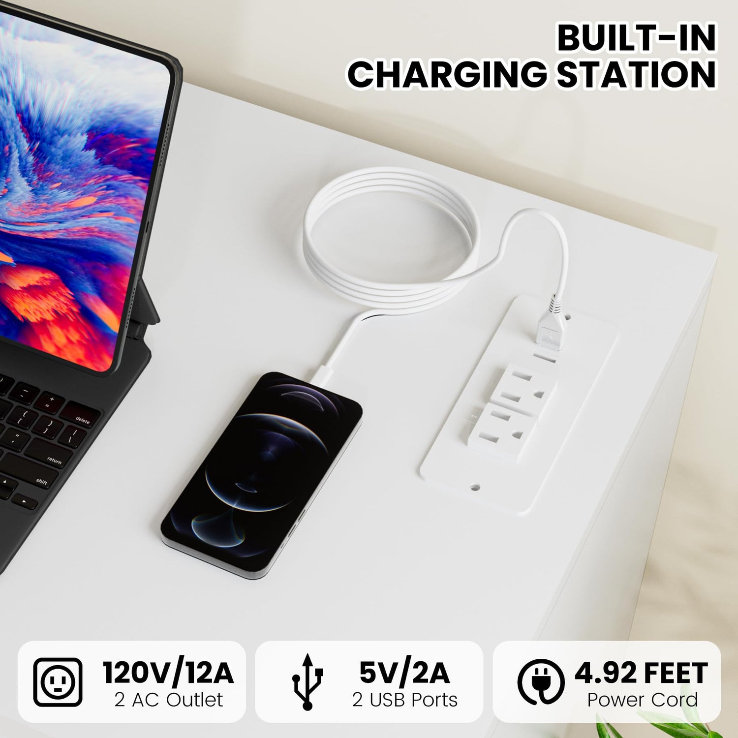 - 【Built-in Charging Station】The wide dresser is equipped with a built-in power strip featuring 2 AC outlets and 2 USB ports, charging is super easy. Multiple devices such as mobile phones,headphones,watches,laptop,or table lamp,etc.can be charged at the same time