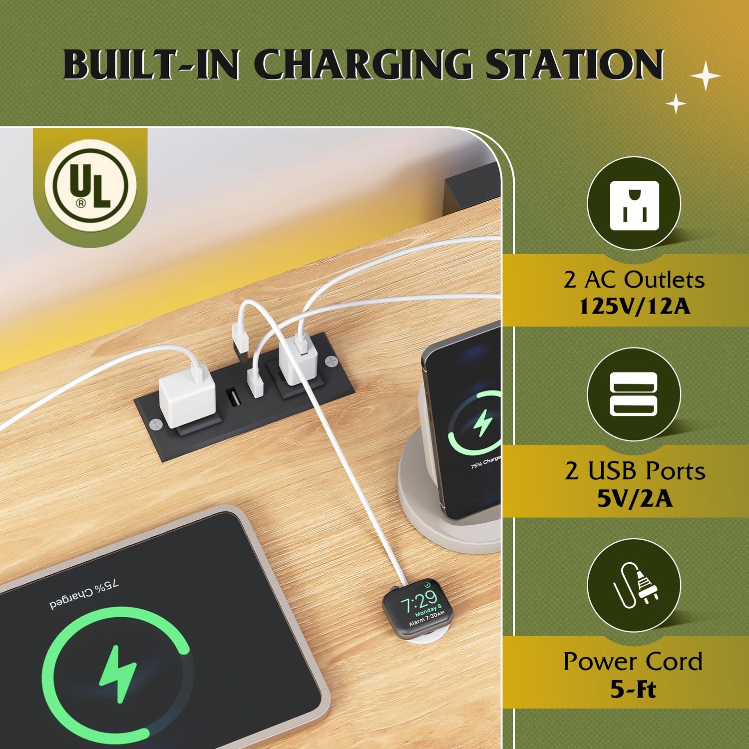 - 【✨ Powered Storage Dresser】Say goodbye to messy wires! TV entertainment center is equipped with 2 AC sockets +2 USB ports, 1.5m flexible cable length, TV, game console, router a power board can be done, instant increase desktop cleanliness by 50%, through UL/ETL certification, electricity safety!