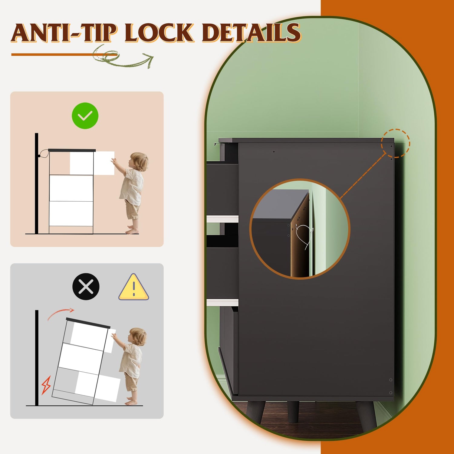 - 【Safe and Sturdy】The bedroom dresser is crafted from durable engineered wood, ensuring long-term use and scratch resistance. Each wood drawer can hold up to 30lbs, and the wood tabletop can hold up to 130lbs. Equipped with an anti-tipping device, effectively preventing shaking or tipping over, keeping family members and pets safe.