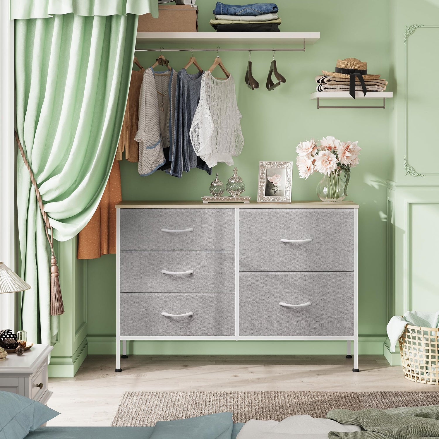 WLIVE Dresser for Bedroom with 5 Drawers, Wide Bedroom Dresser with Drawer Organizers, Chest of Drawers, Fabric Dresser for Living Room, Closet, Hallway, Light Grey