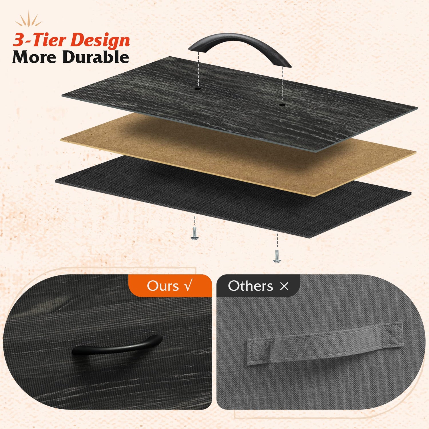 * STURDY STRUCTURE: Strong steel frame and water-resistant wood top offers stable support and ensue years of use; High-quality linen fabric drawers is easy to clean