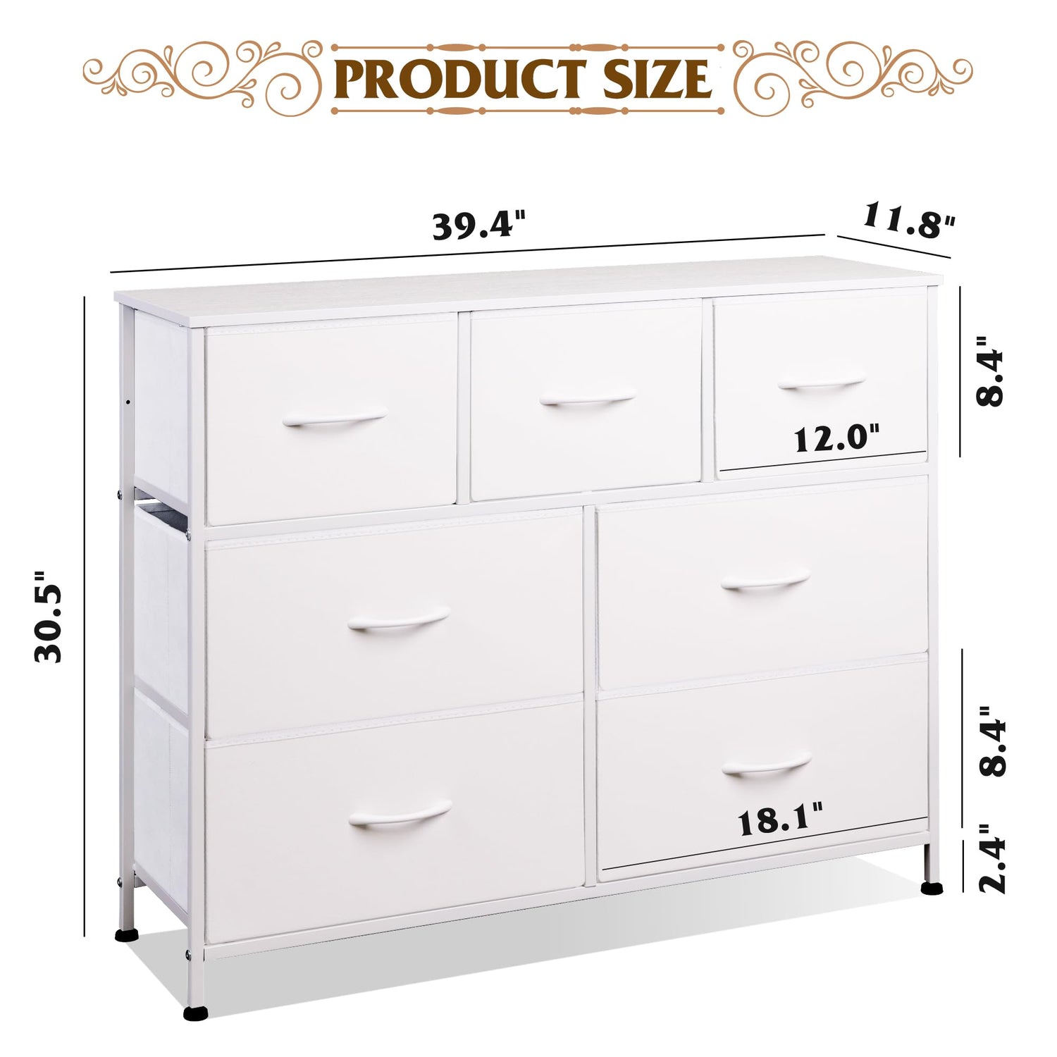 - Roomy Storage Space: The dresser features 7 foldable deep drawers, which provide endless organizational possibilities and protect your privacy as well. The wood top is perfect to place vase, photos, mirror and frequently used items.