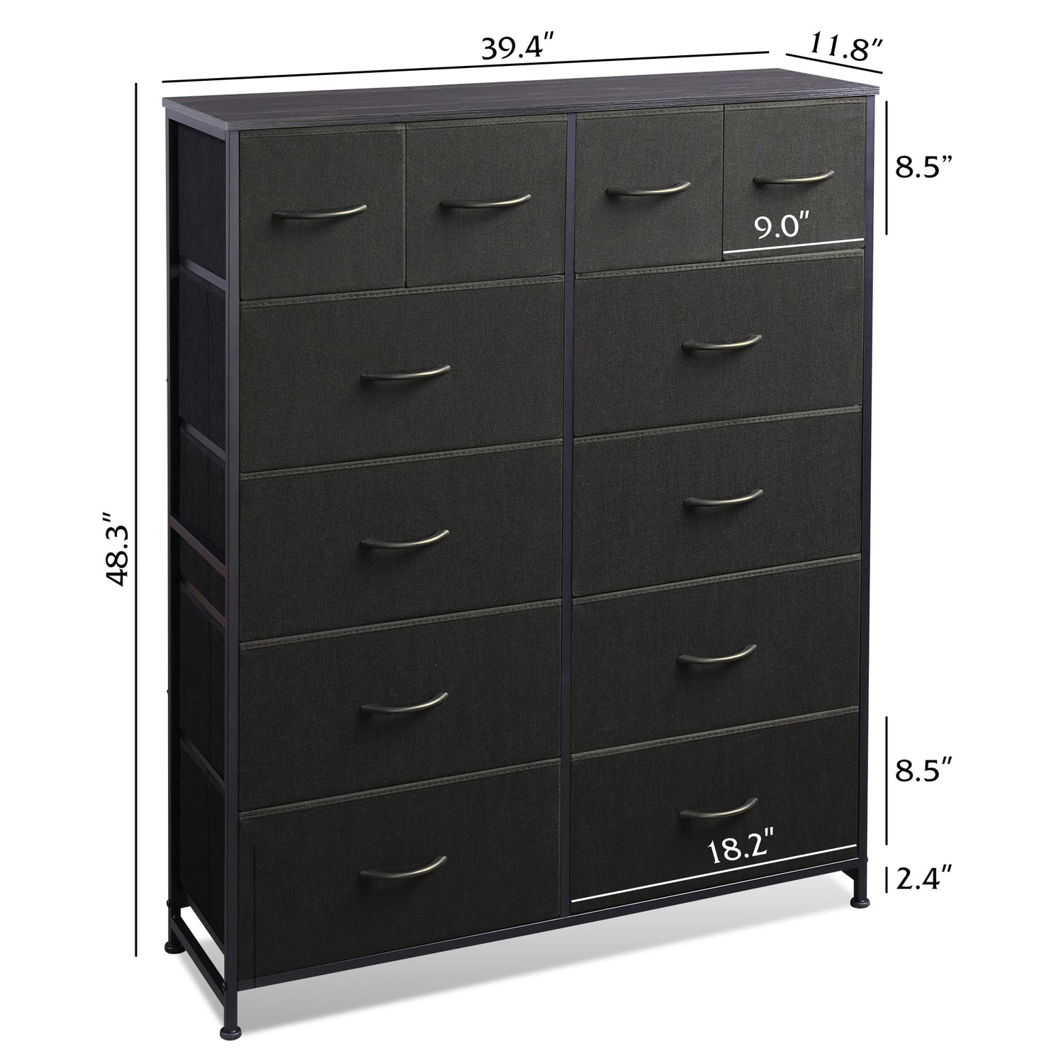 - Easy Assembly: This bedroom dresser with drawers measures 39.4" L x 11.8" W x 48.3" H. The large dresser comes with detailed instructions and all hardware needed for installation, you can assemble this 12 drawer dresser within 30 minutes.