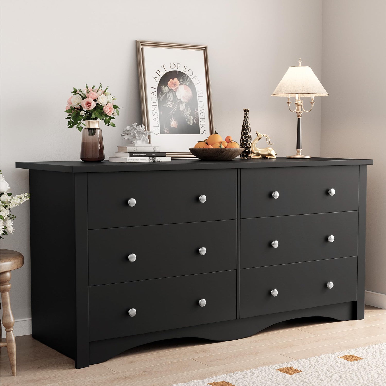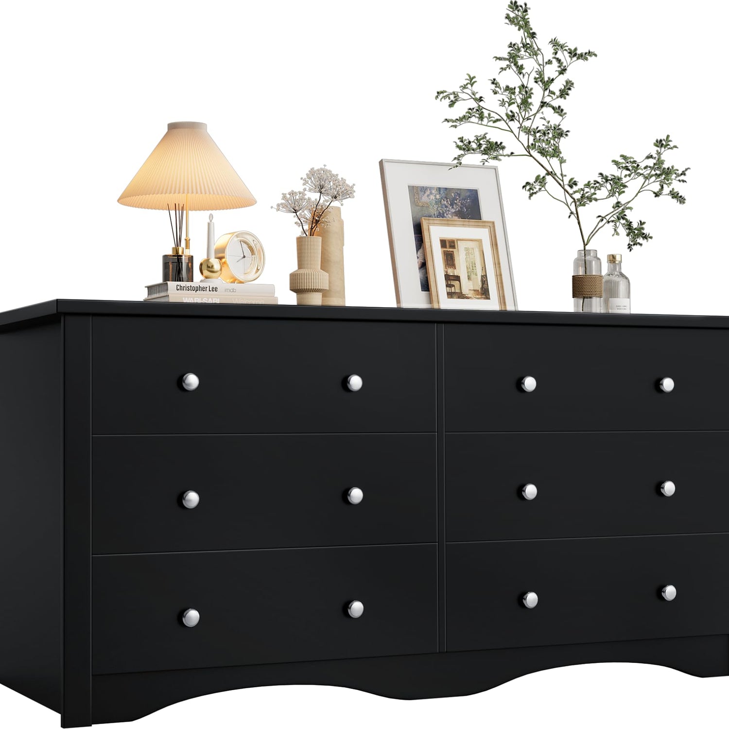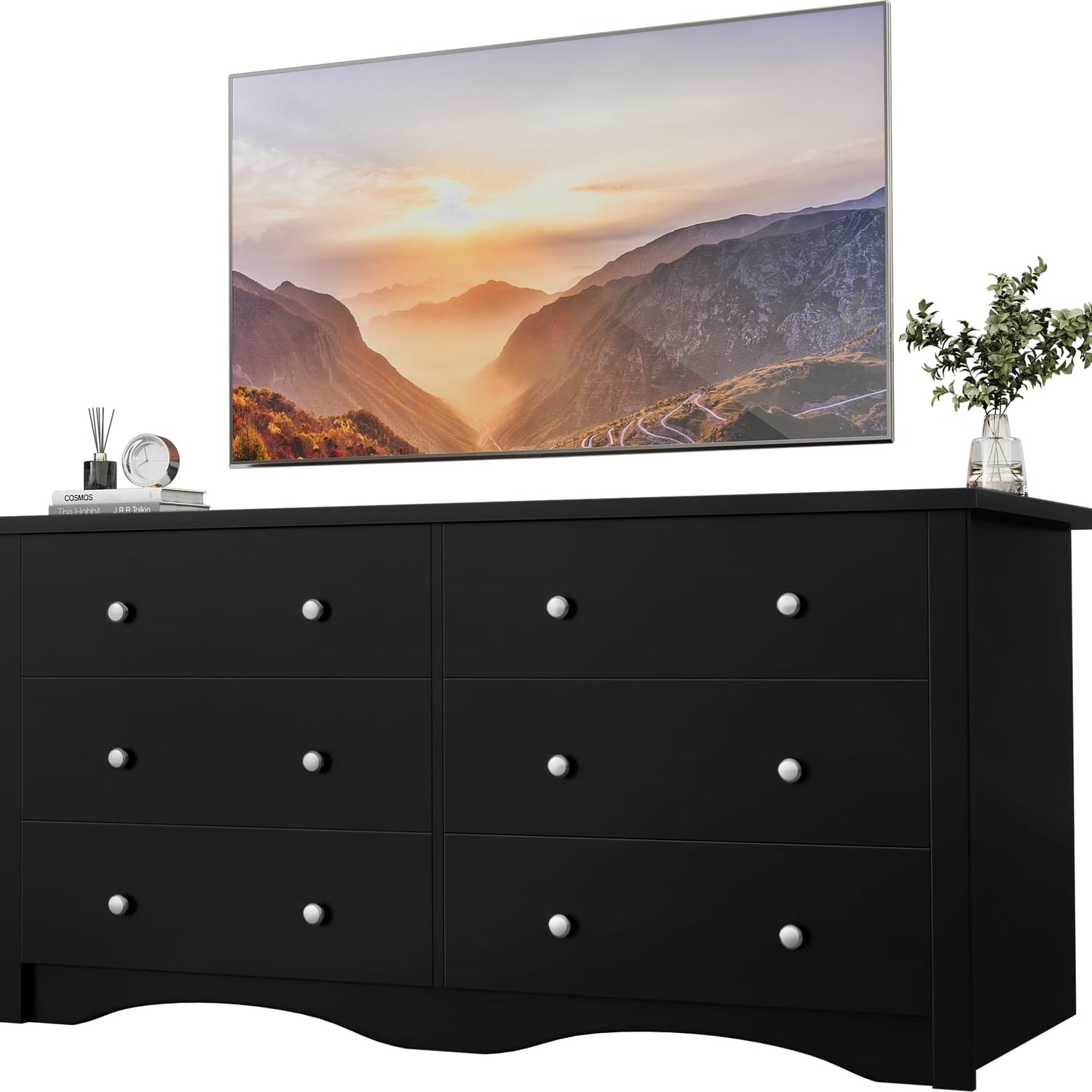 YESHOMY Dresser for Bedroom, 6 Drawer Dressers, Wide Storage Organizer Chest and TV Stand for Bedroom, Living Room, Hallway, Dormitory, Dark Black