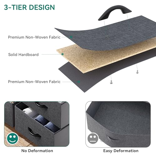 - UNIVERSALLY COMPLEMENTARY- Premium light grey fabric drawers, with sturdy white metal frame and wooden tabletop; Enjoy modern scent and stylish aesthetics that easily complements various living spaces: living rooms, bedrooms, hallways, entryways, closets, etc.