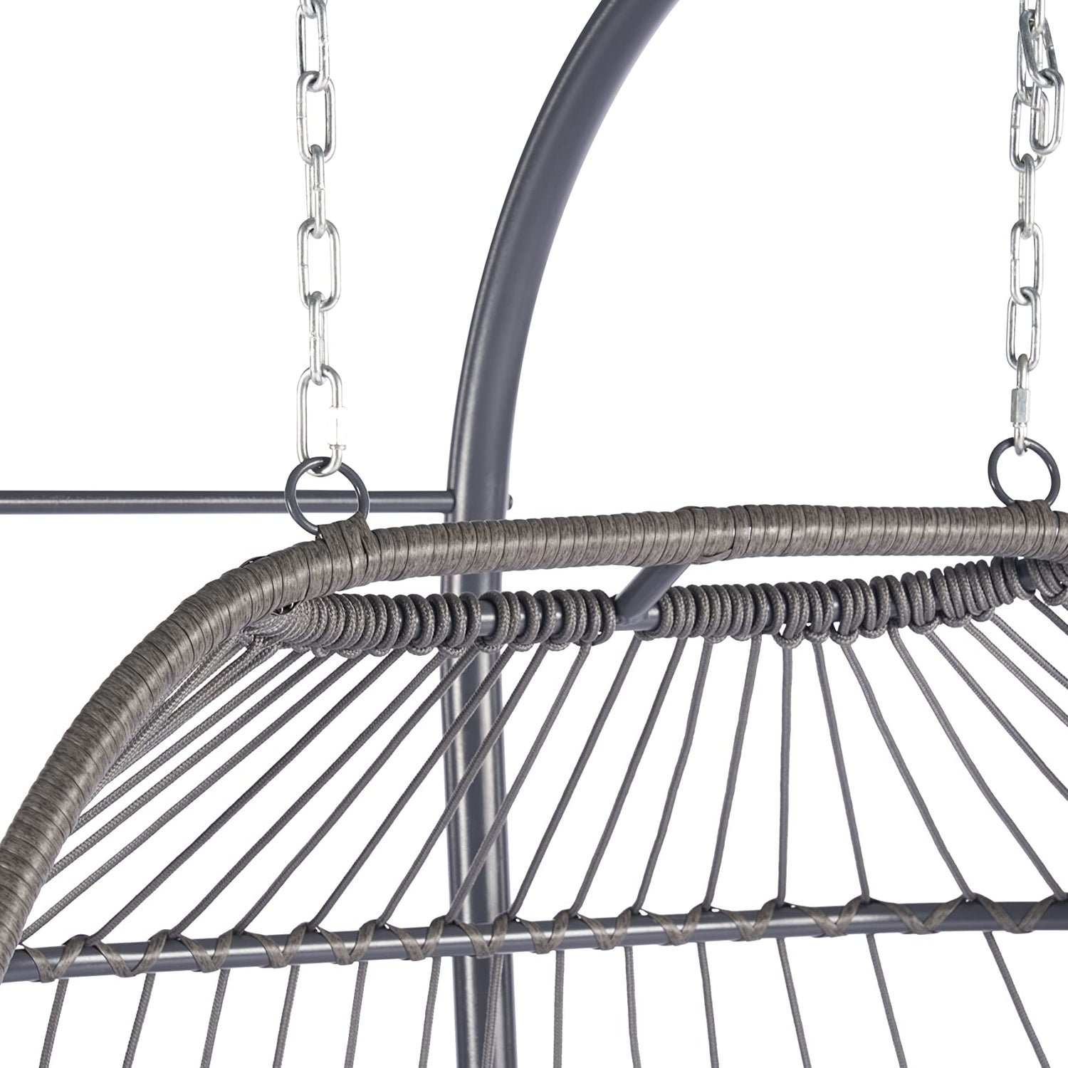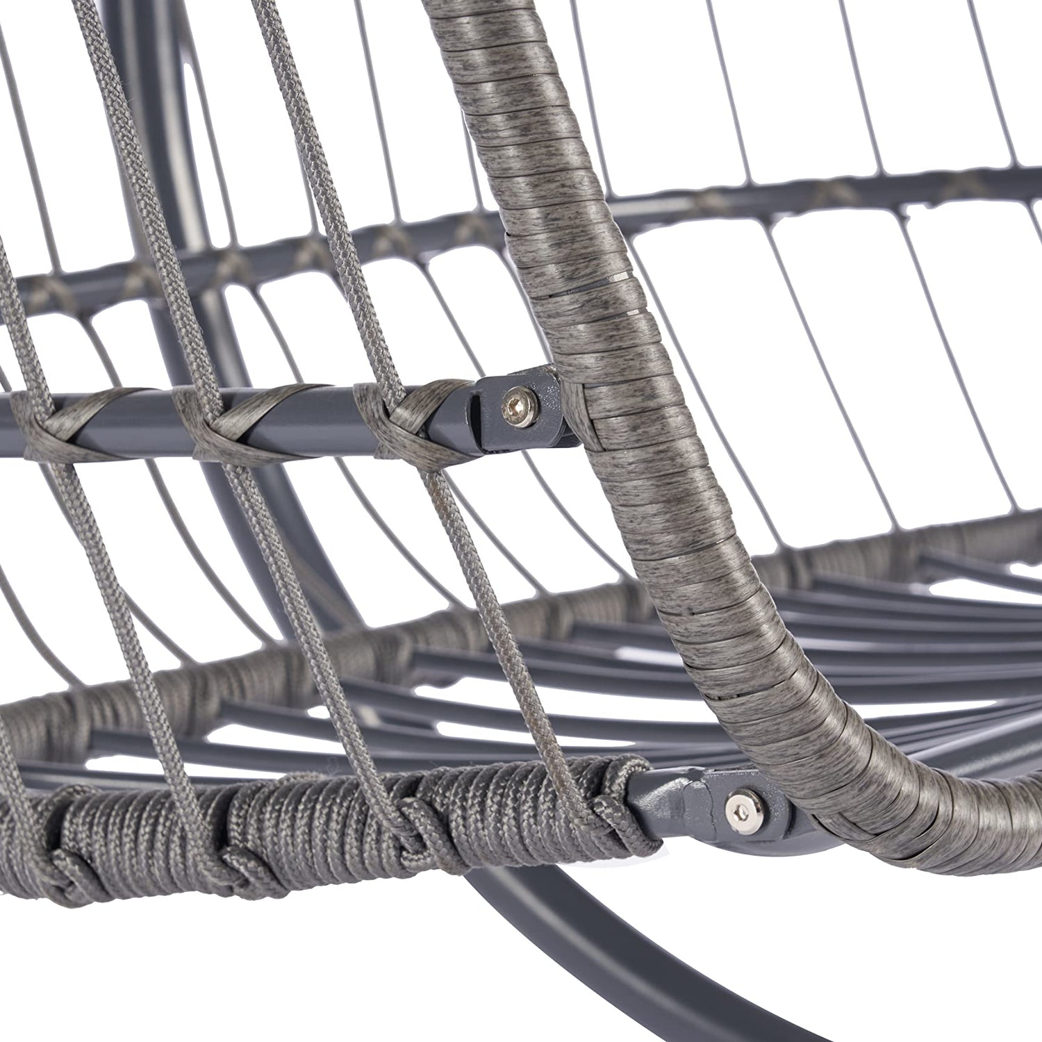2 Person Outdoor Hanging Egg Chair, Patio Rattan Wicker Egg Chair, Double Swing Hanging Chair with Stand, Outdoor Swing Chair, Patio Egg Chair Swing, Beige (Beige, 2 Person)