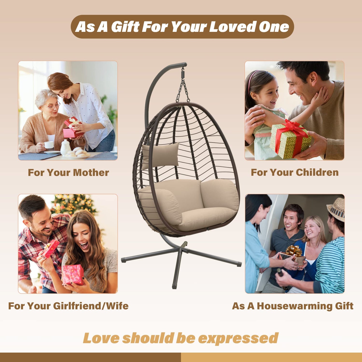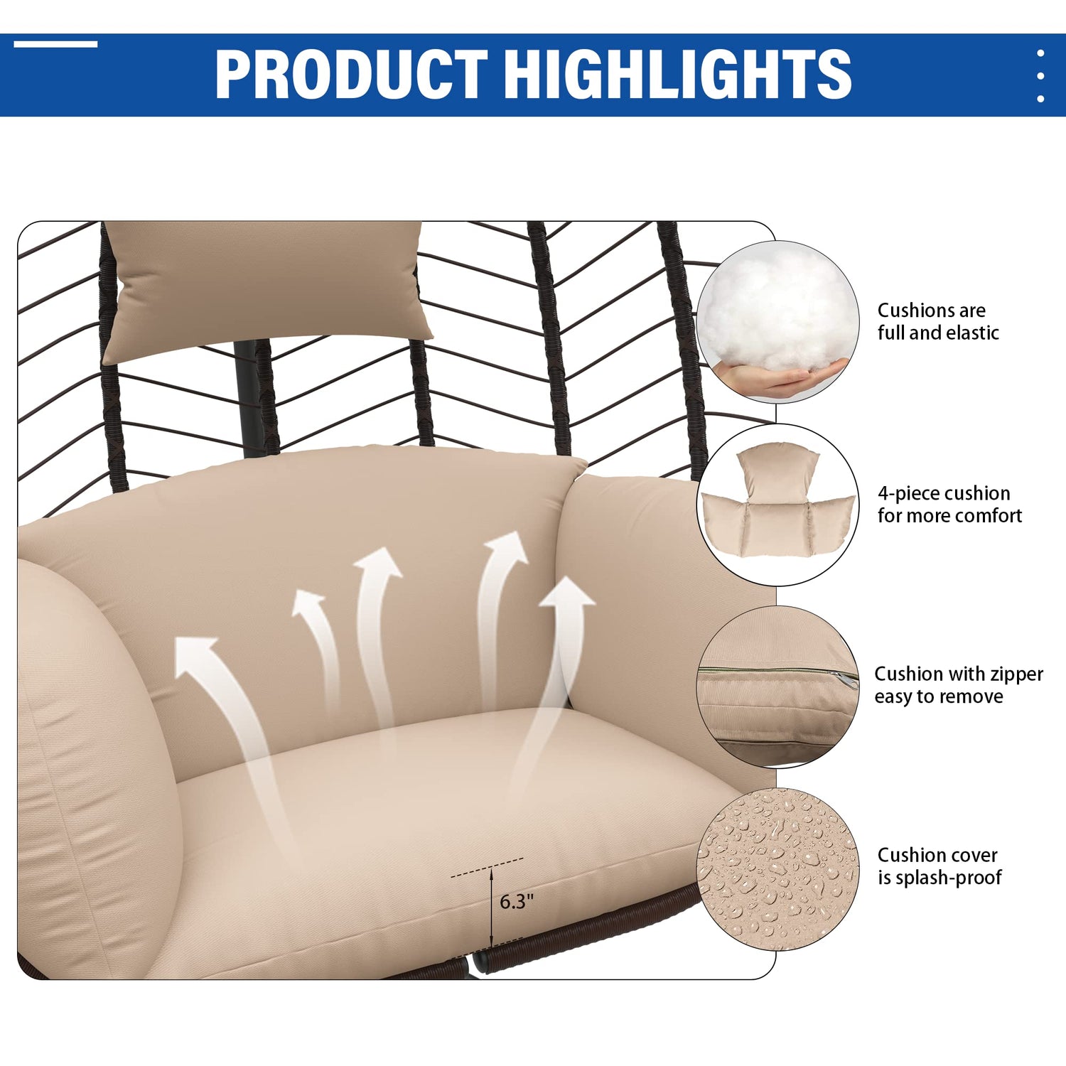ALAULM Egg Swing Chair Outdoor Indoor Wicker Rattan Hanging Chair with Stand 350lbs Capacity w/Strong Frame & UV Resistant Cushions for Patio Balcony Bedroom (Brown)