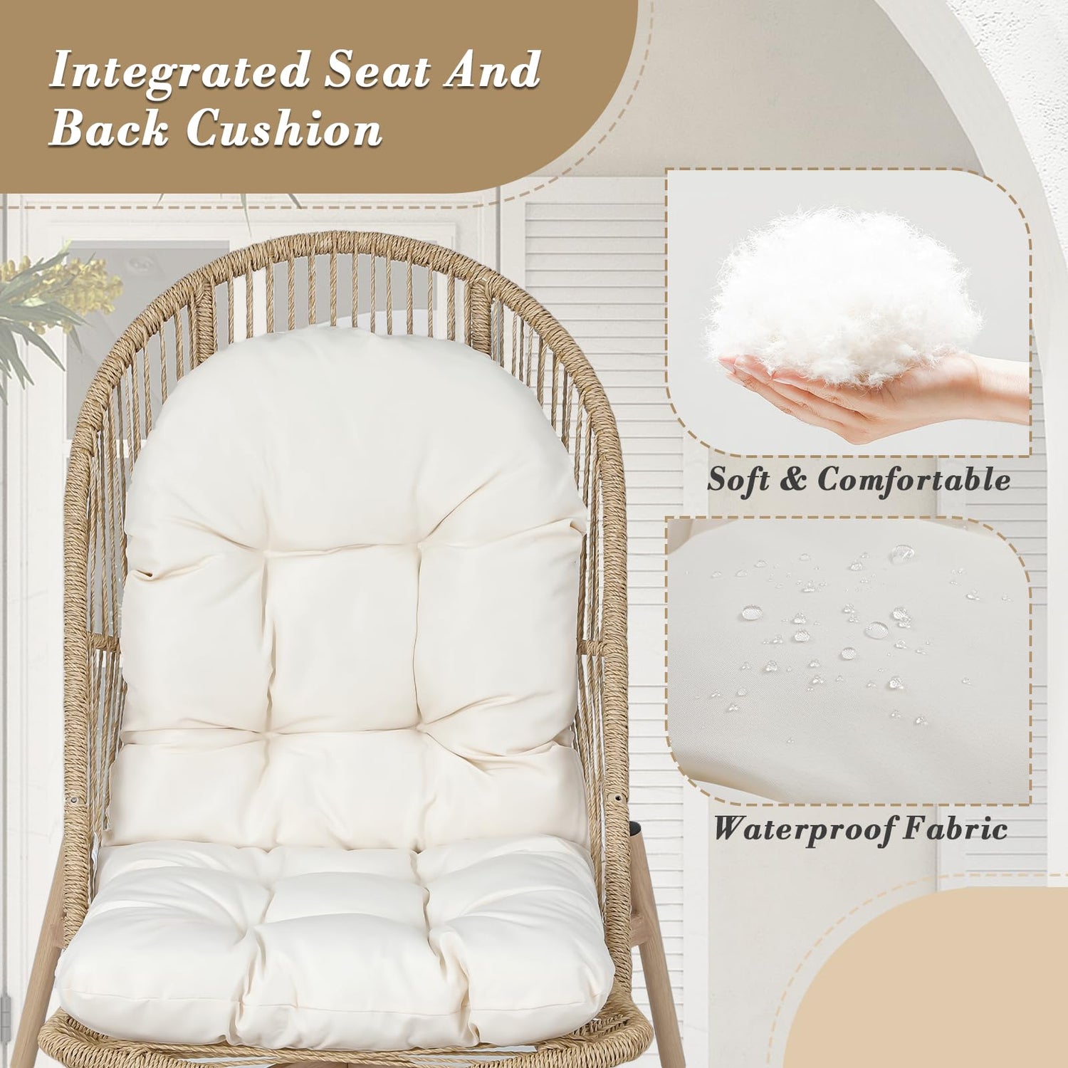 Integrated Seat and Back Cushion: The patio egg chair features a thick, high-density foam cushion for added comfort and support. Its plush design helps relieve pressure on your neck and lower back, making it more comfortable for long periods of sitting.
