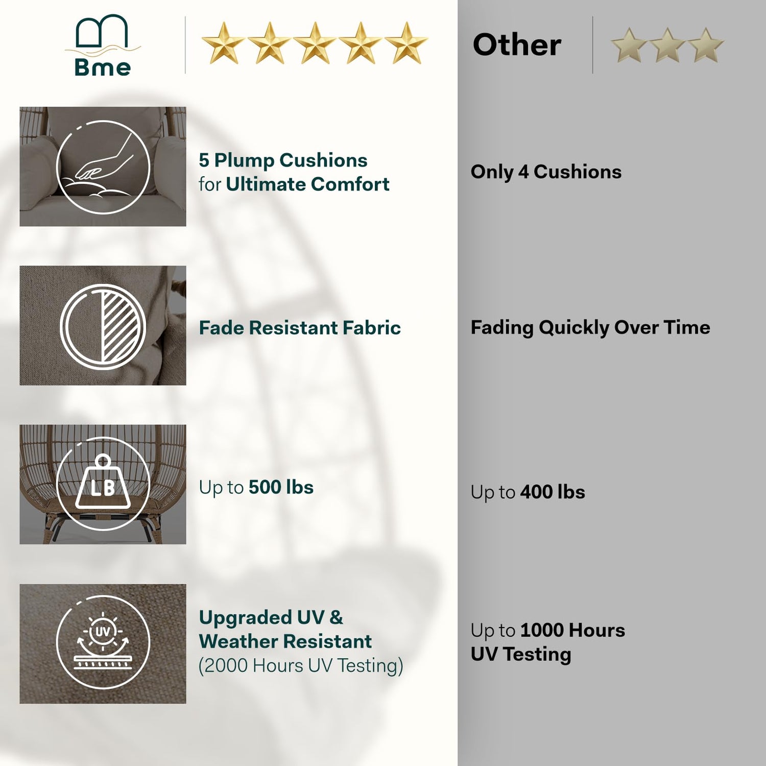 Bme Heavy Duty 500 Lbs Capacity Oversized Wicker Egg Chair for Outside, UV 2000 Hours Material with Non-discolouring Fabric Cushion, Durable Against Water, Weather