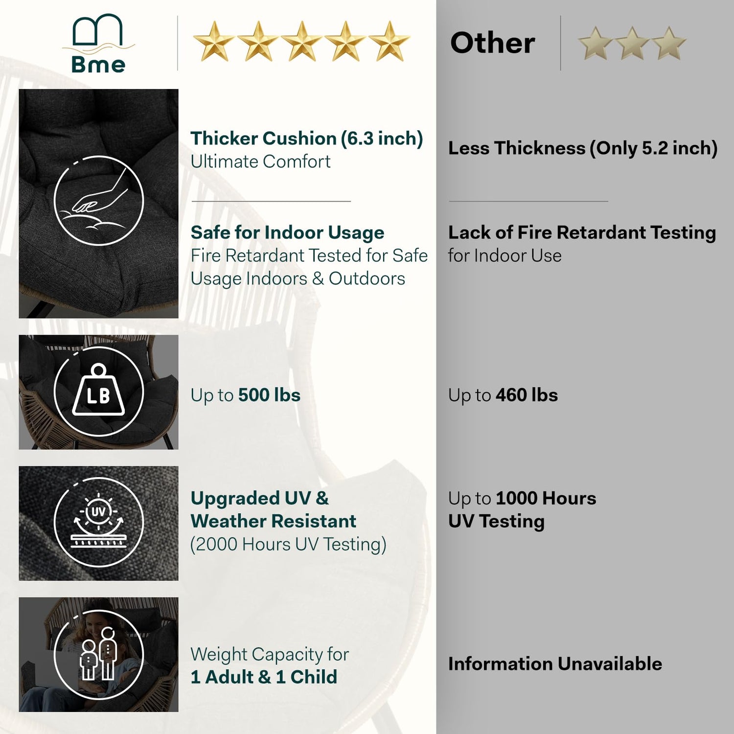 Bme Heavy Duty 500 Lbs Capacity Wicker Egg Chair for Outside & Indoor, UV 2000 Hours Material with Flame Retardant Tested Cushion, Durable Against Water, Weather, Brown Base