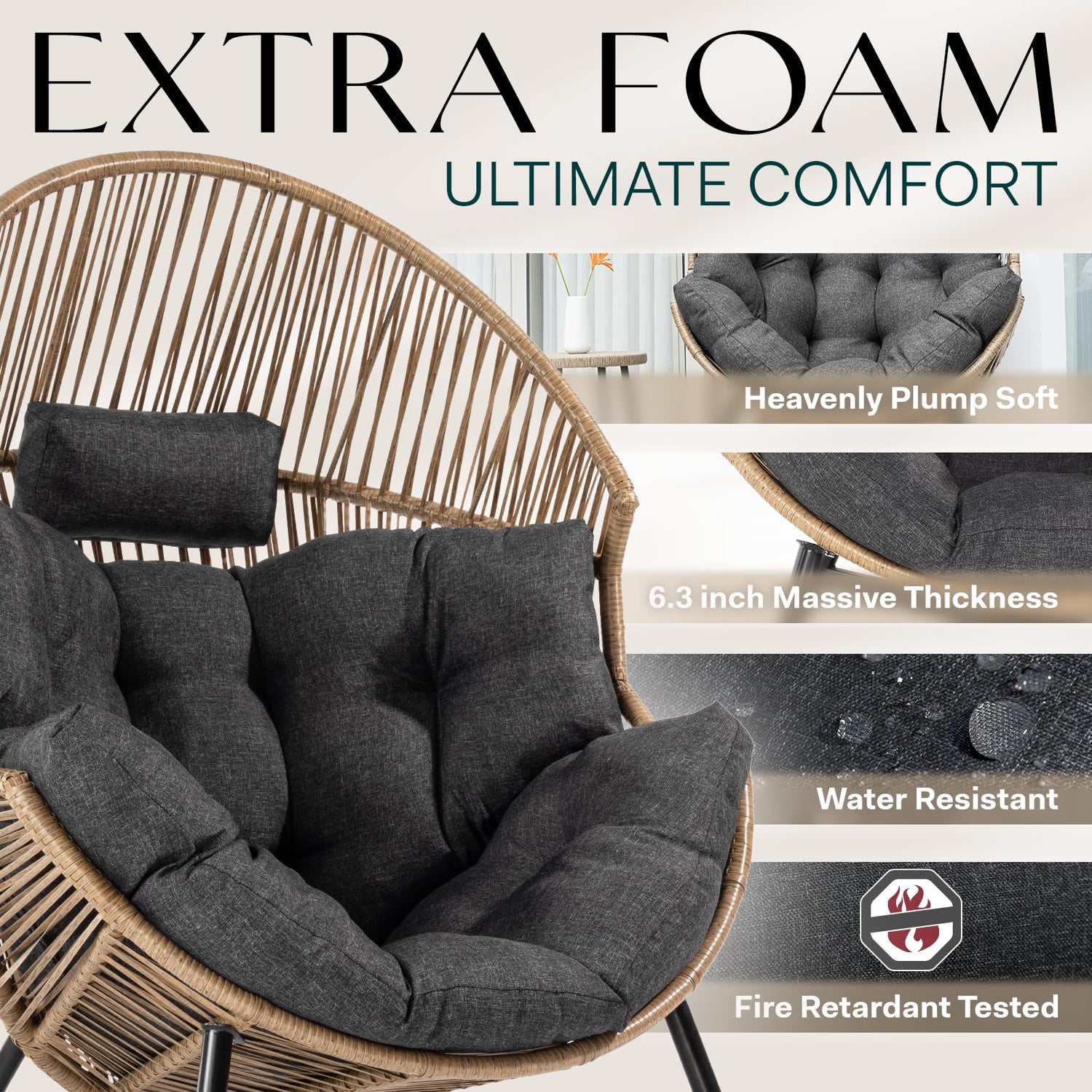 - 【HEAVENLY PLUMP SOFT CUSHION】6 5/16 in. thick cushion of this wicker egg chair outdoor offers unrivaled plushness and support; The cushion has been flame retardant tested and is durable against water and weather elements.