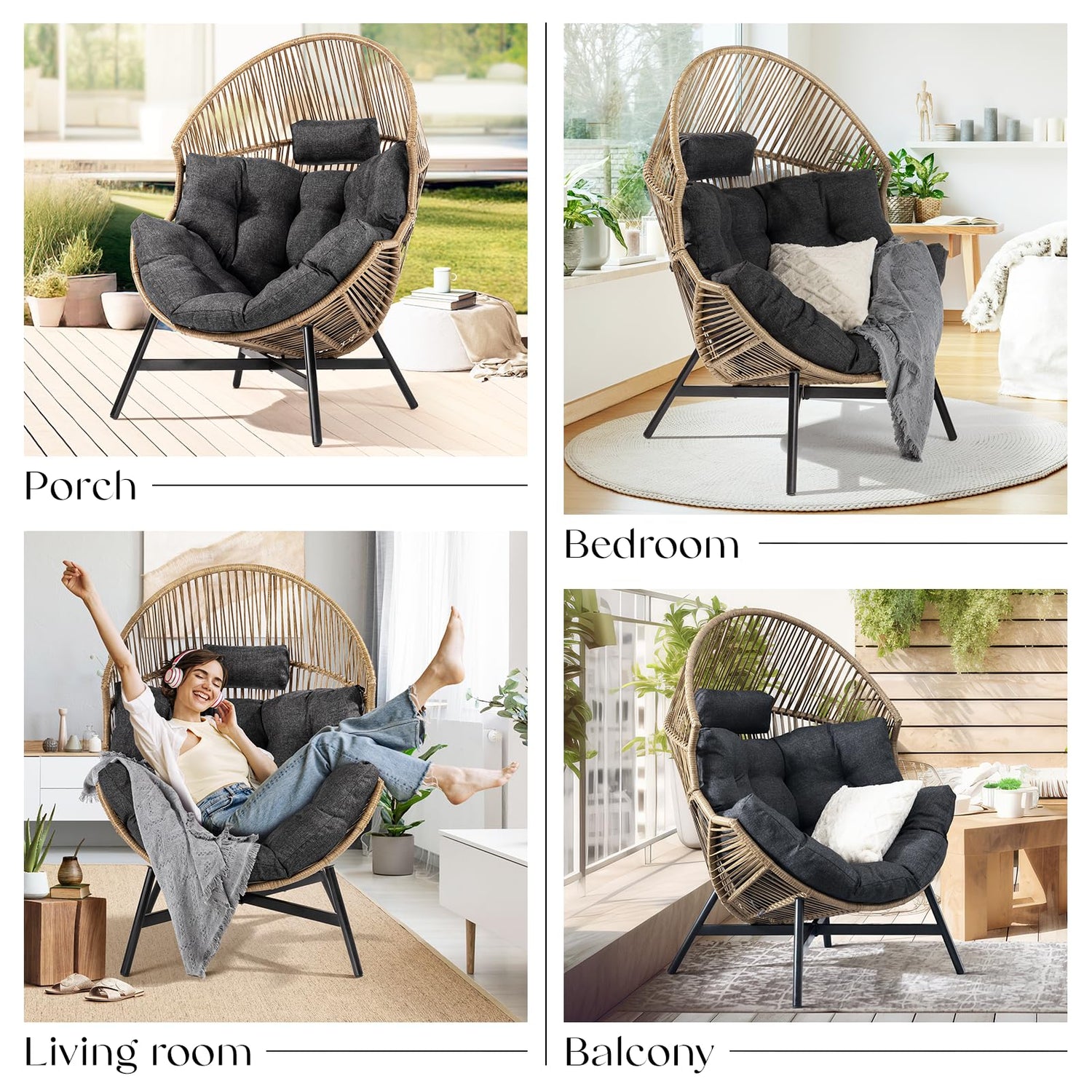 - 【SPACIOUS WICKER EGG CHAIR OUTDOOR】This oversized egg chair with legs provides ample room for you to lie out and unwind, with a seat that is 39 1/2 inches wide and 24 inches deep.