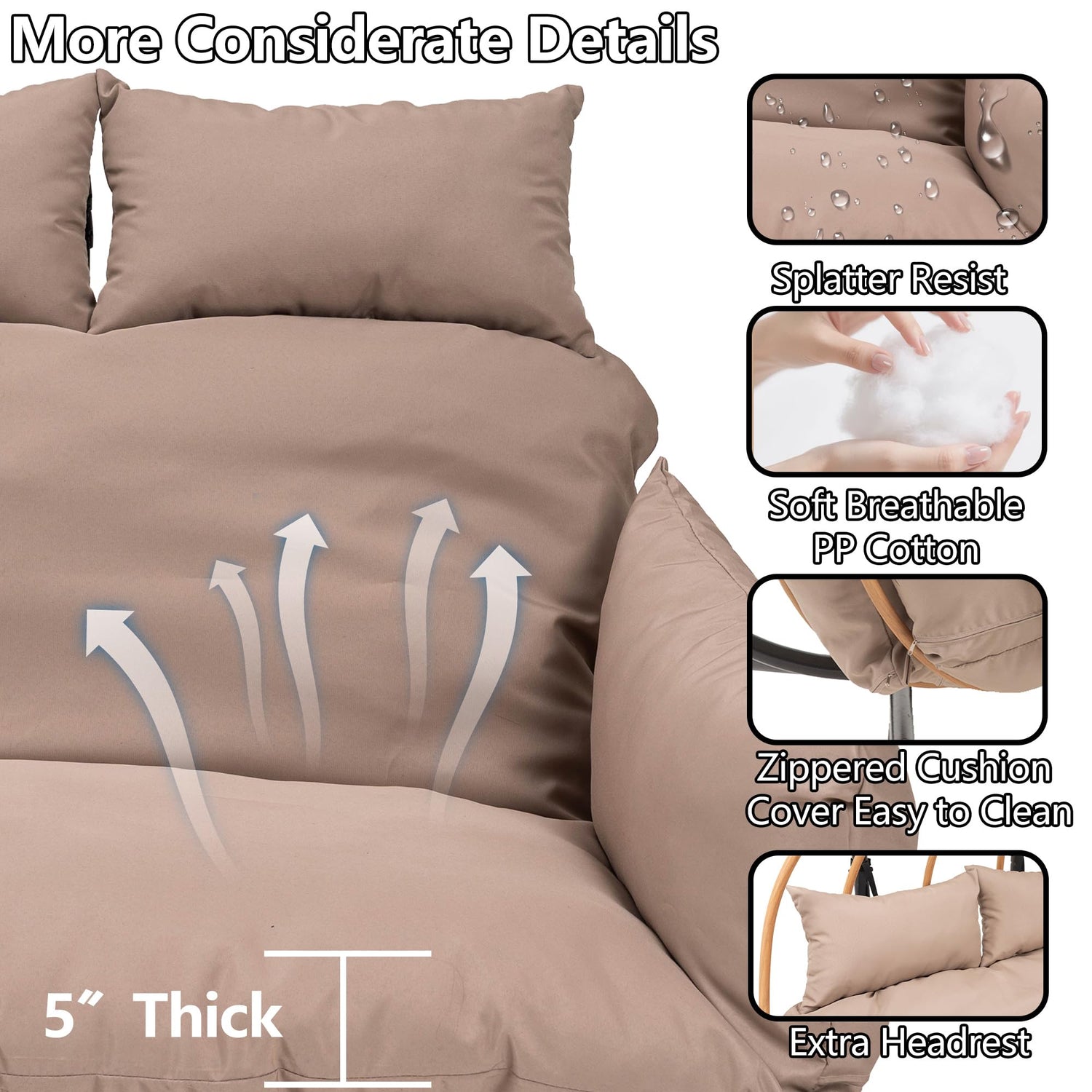 - Upgraded Quality: The outdoor egg chair has a fluffy cushion for soft sitting. its upgraded waterproof fabric resists sun, won't fade, suits all - weather use, and cleans easily, ensuring lasting outdoor use