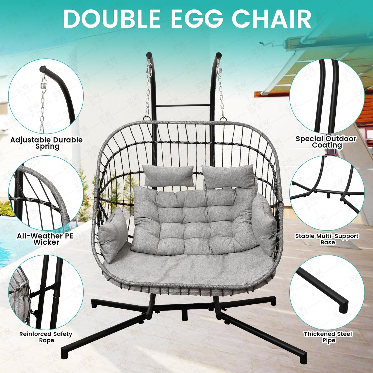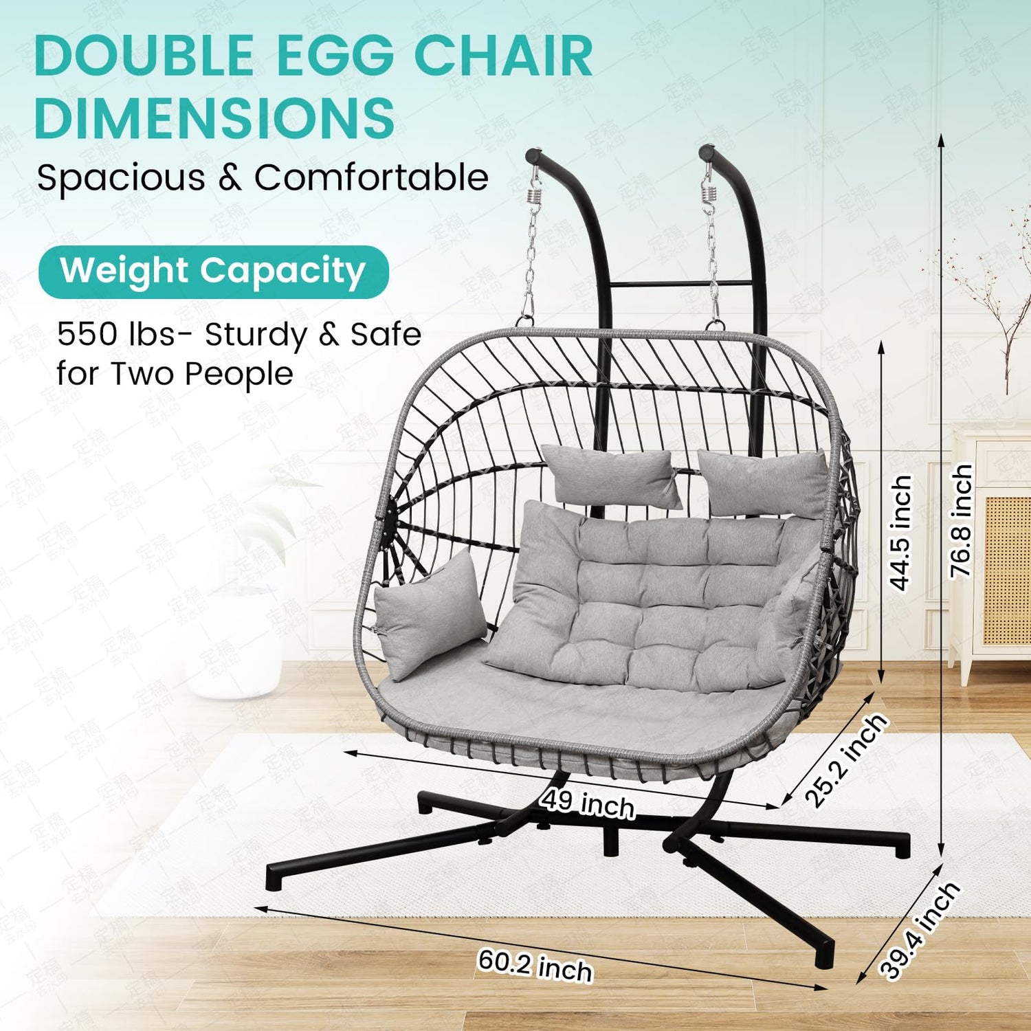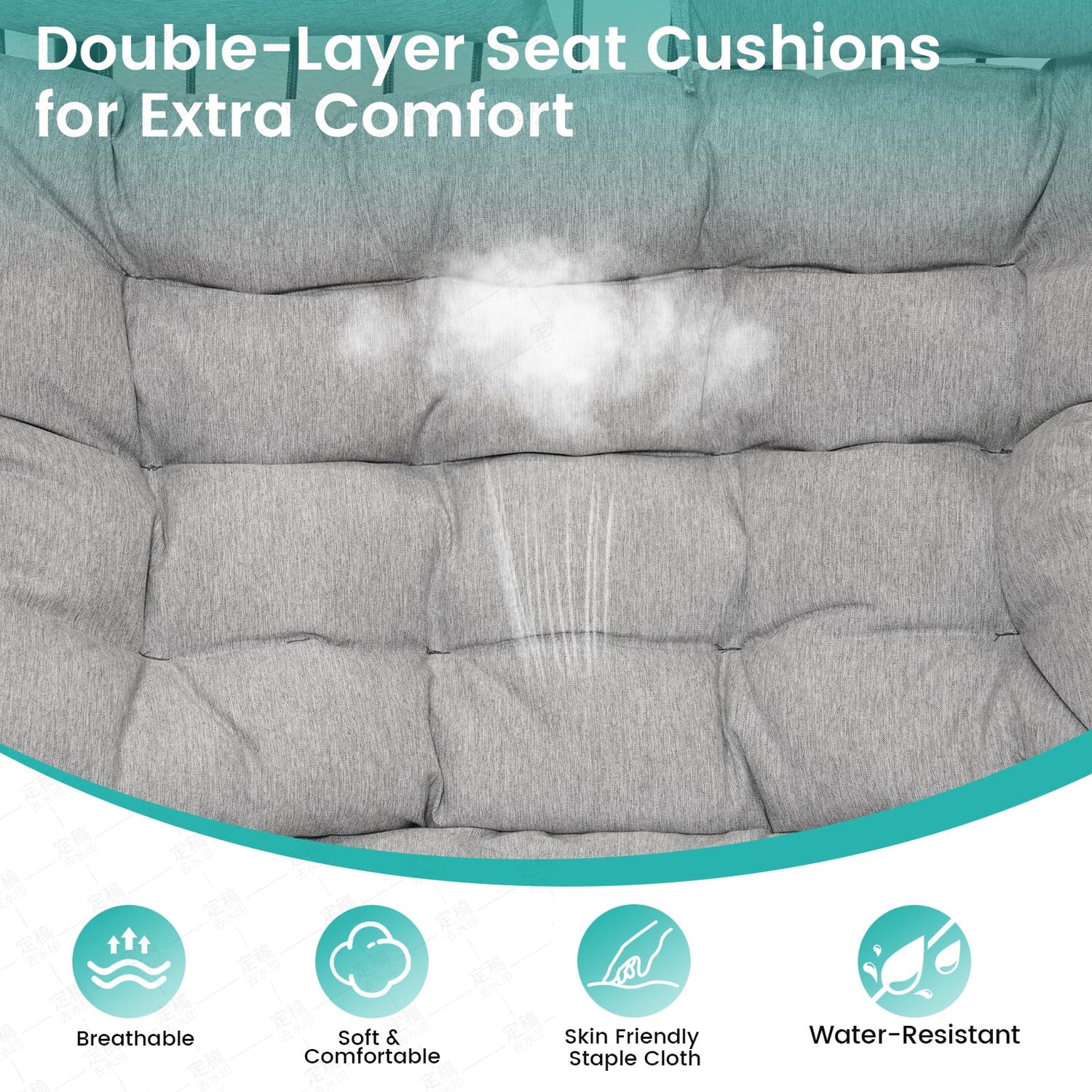 - Easy to Assemble: This double patio egg chair comes with all necessary hardware and detailed instructions, making assembly simple and safe. Compared to most patio egg chairs, you'll enjoy quicker setup and faster relaxation.