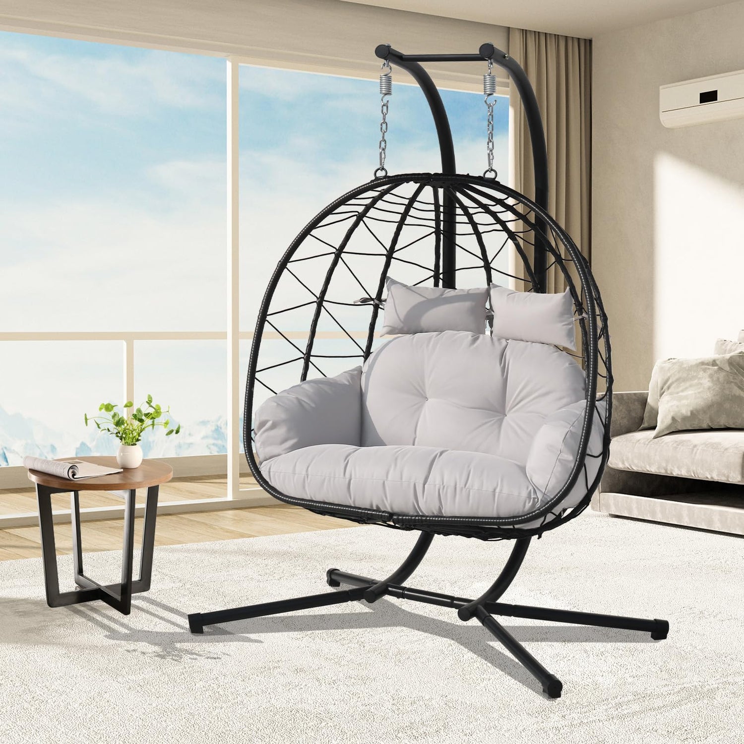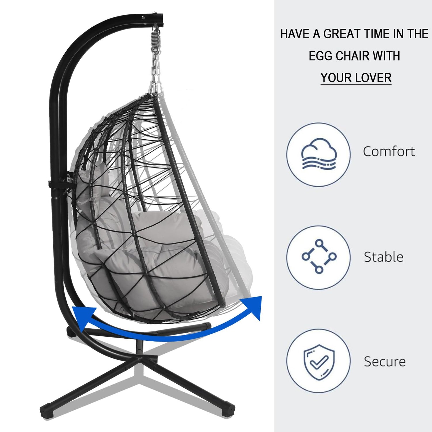 - and Durable: this double egg chair with stand is made of durable waterproof rattan and supported by Strong iron frame, enable it to be used for a long time in harsh environments without damage,wrapped with all-weather proof premium PE rattan, ensuring stability and longevity, it can be used for many years.With a weight capacity of up to 600 pounds