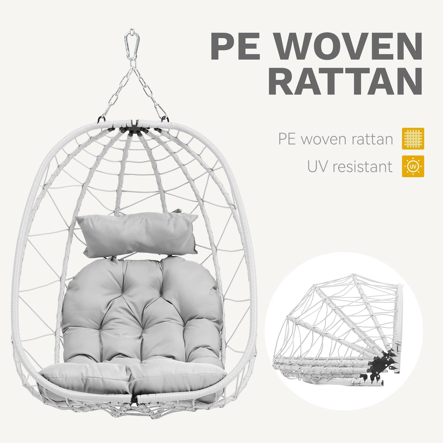 - INSTALLATION GUIDE - The wicker egg chair comes with all necessary hardware and a detailed manual to facilitate a hassle-free installation process. Additionally, the waterproof cushion covers allow for easy cleaning being removable. These features make it a great choice for outdoor lounge areas.