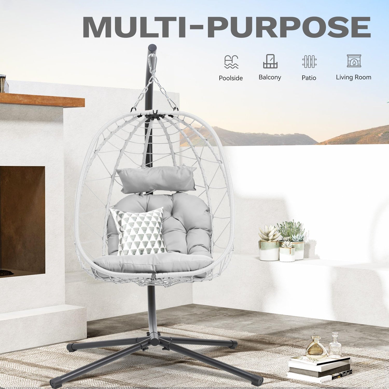 - MULTI-USES: Hanging Egg chair with stand can be used in the balcony, bedroom, deck or lawn, which is a good choice for your indoor and outdoor space