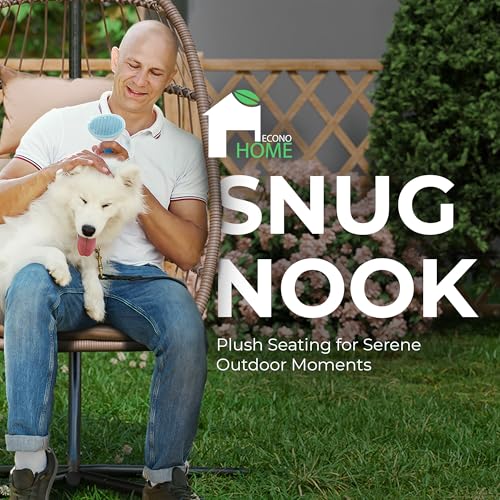 Econohome Hanging Egg Chair with Stand - Indoor/Outdoor Swing Hammock Chair with Plush, Washable Cushions, 350LBS Capacity, Ideal for Relaxation in Bedrooms, Balconies, Gardens, and Patios