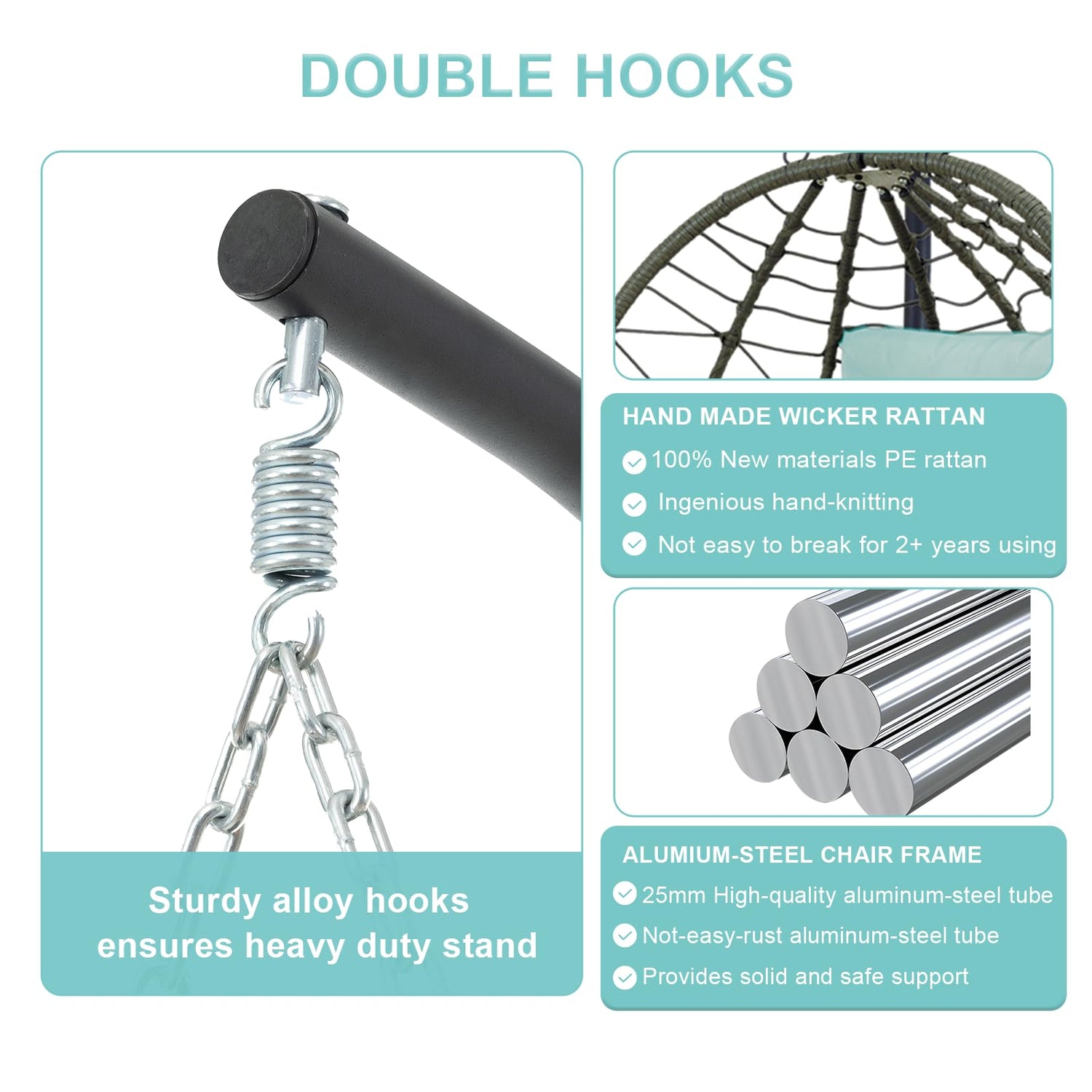 - Sturdy and Durable: Egg swing chair with stand's aluminum-steel frame and a sturdy heavy-duty steel stand ensures extend lifetime, and the sturdy stand provides stable support, the chain can hold up to 350 lbs, you can enjoy it for years.