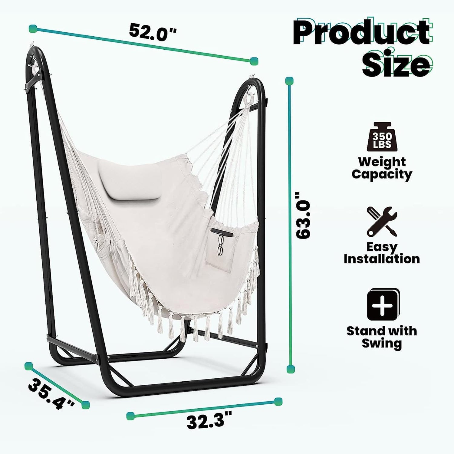 - 【Sturdy material】 Hammock chair stand with double-tube design, loads 350 pounds, swings more stable, powder coating to prevent rust, Withstands most weather conditions,which is ideal for indoor and outdoor