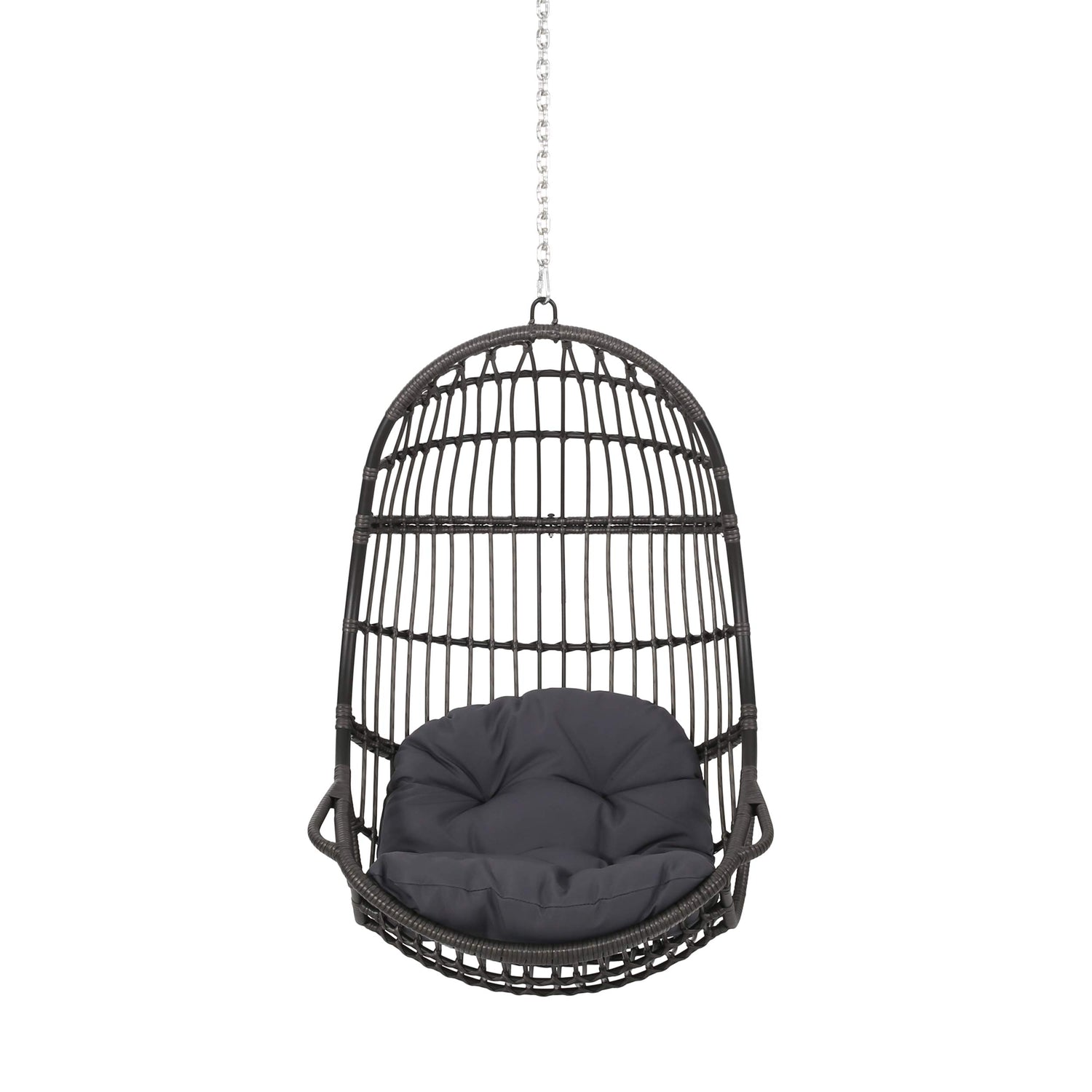 Hanging Chair with 8FT Chain, Egg Swing Chair Without Stand Outdoor Indoor, Wicker Rattan Hammock Egg Swing Chair with Hanging Chain, Ideal for Patio, Porch, Garden, Grey