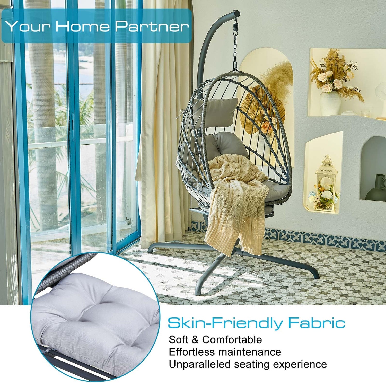 Hanging Egg Chair with Stand and Leg Rest โ Rattan Wicker Swing Hammock Chair, UV-Resistant Cushion, Heavy-Duty Frame for Indoor & Outdoor Patio, Bedroom, Balcony, Garden โ 330 lbs Capacity.