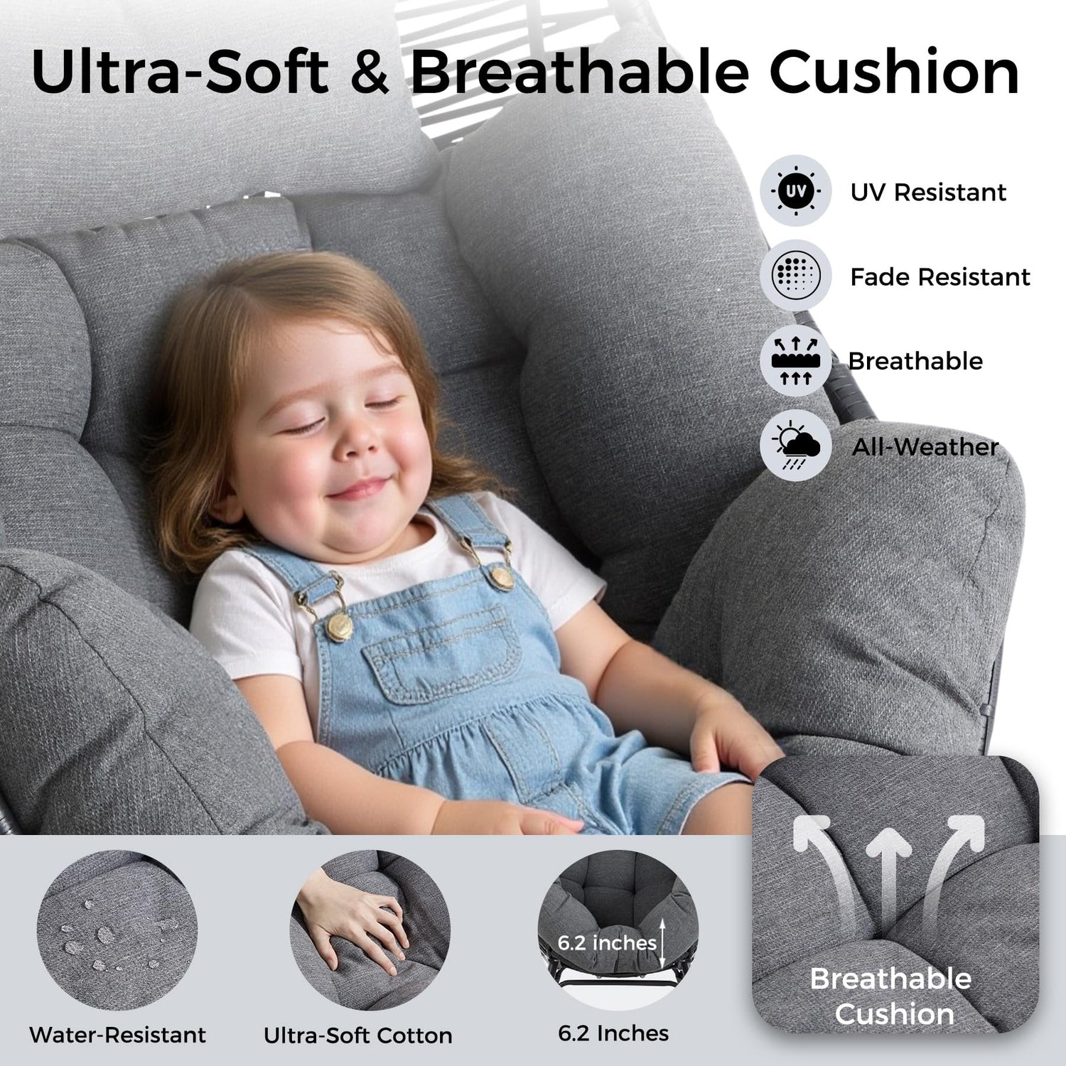 • 【Cloud-Like Comfort】Includes a full set of olefin cushions (1 ultra-soft seat cushion + 1 adjustable headrest). The egg chair cushion is filled with high-resilience sponge that retains its shape. It lets you relax as if nestled on a gentle cloud, offering lasting comfort and tranquility.