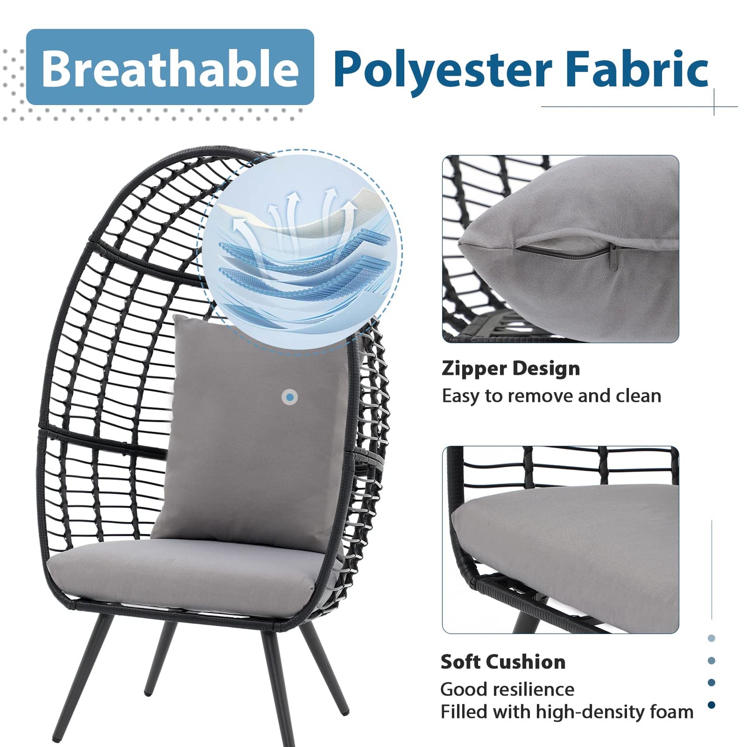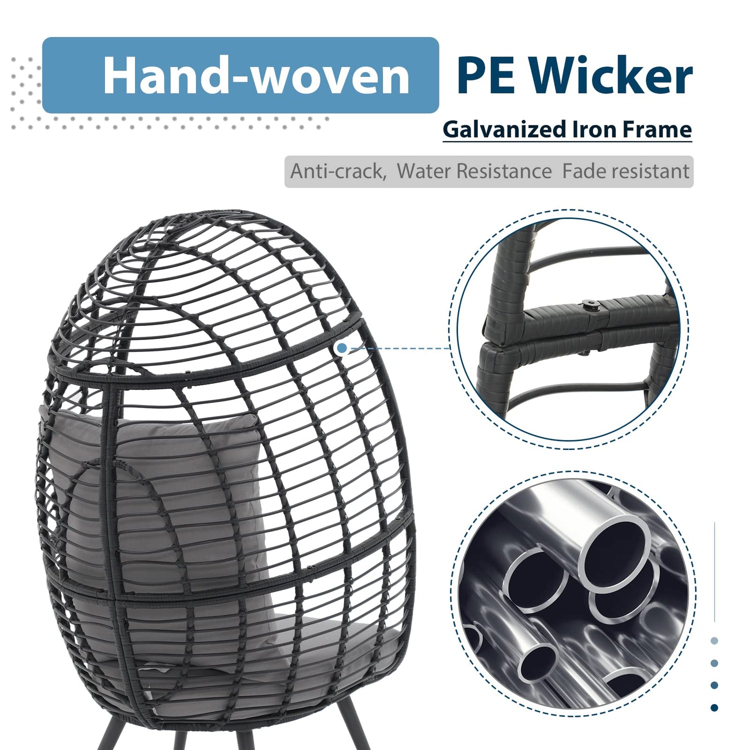 - [All-Weather PE Wicker] This outdoor wicker egg chair is made of hand-woven PE rattan, featuring sturdy, crack-resistant, fade-resistant, easy to clean, and smooth to the touch. Ideal for families and young professionals looking to enhance their outdoor or indoor living spaces with stylish, durable furniture.