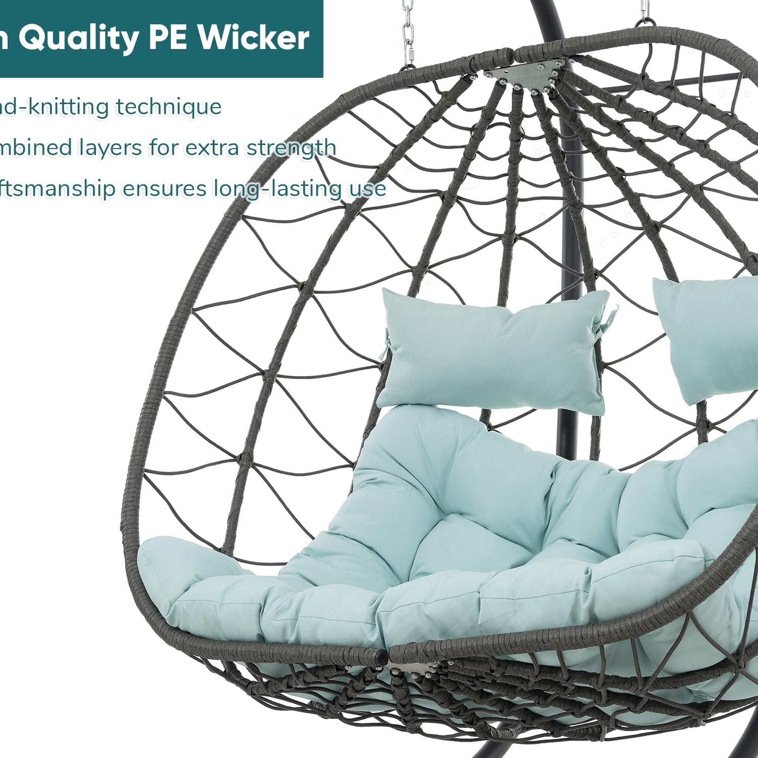 - BUILT TO LAST: Sturdy powder-coated metal frame and high-quality PE rattan withstand sun, rain, and daily use. This double swing chair's not just a season fling - it's a long-term relationship
