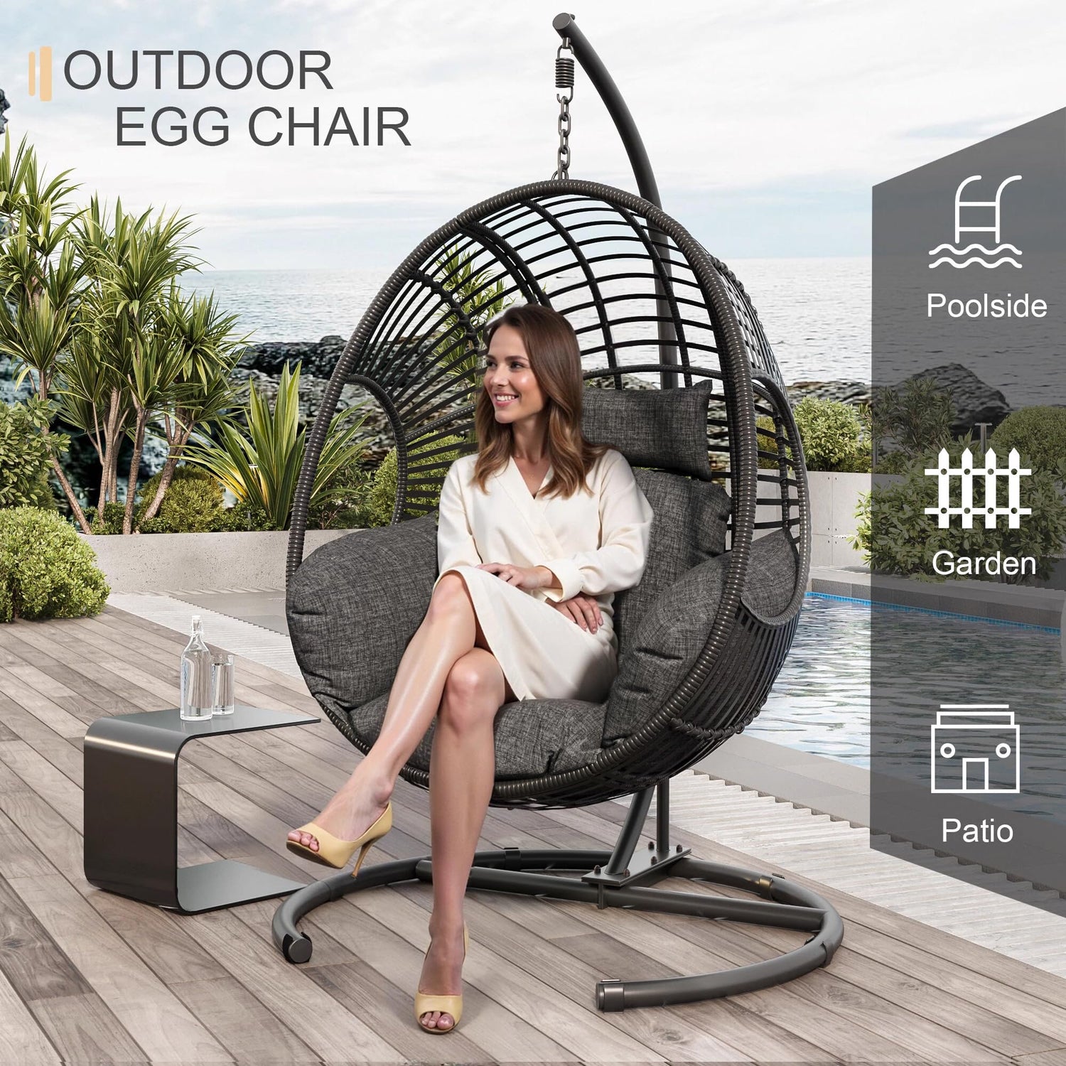 • INDOOR & OUTDOOR: Versatile and stylish, our boho swing egg chair is perfect for both indoor and outdoor use. you can enjoy leisure time with your family in the bedroom, pool, garden, balcony and backyard,allowing you to unwind wherever you please.