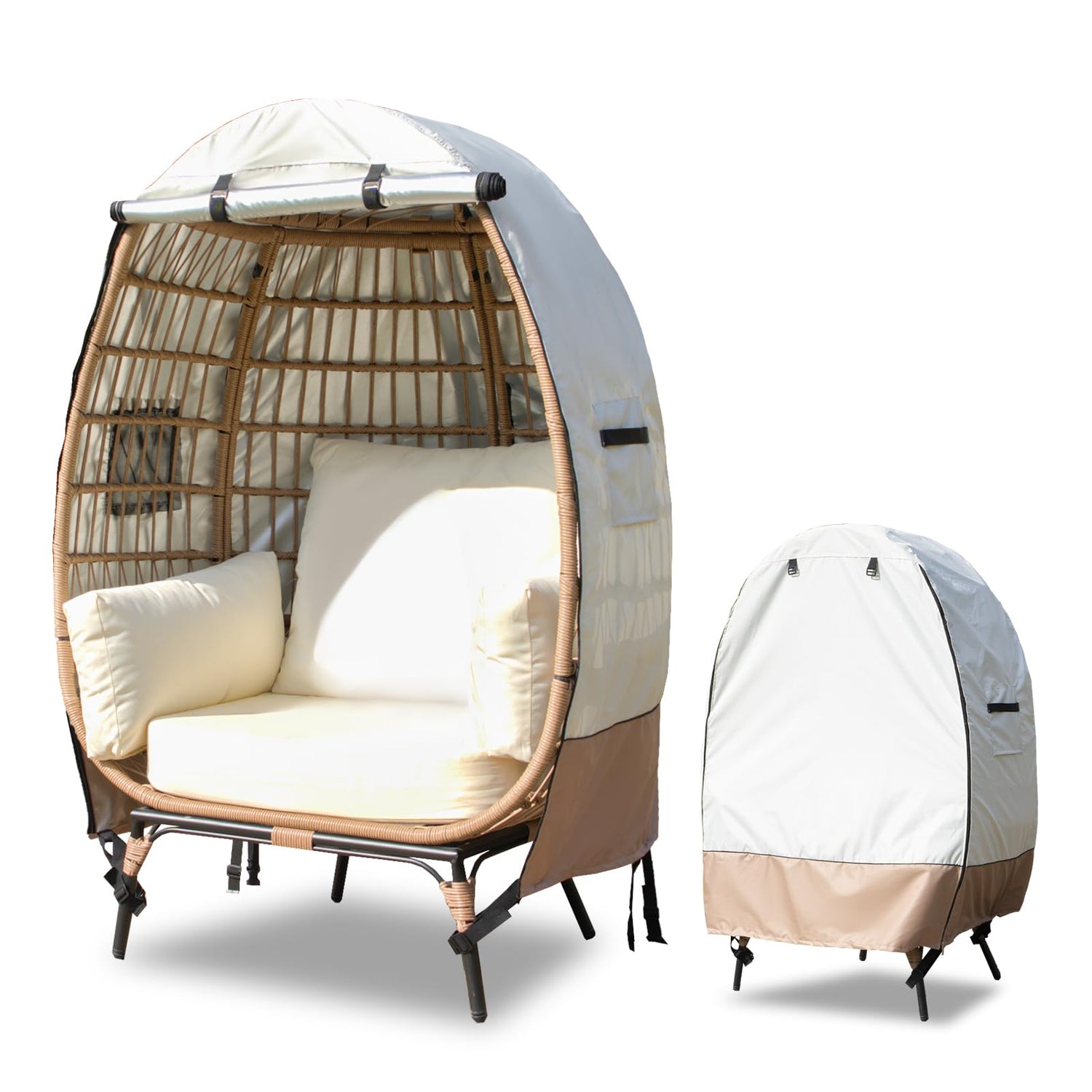 okcool Outdoor Egg Chair Cover,Waterproof Egg Chair Cover with Zipper for Wicker Patio Basket Chair(Beige & Brown,Fits 43" L *25" W*55.1" H Egg Chair)
