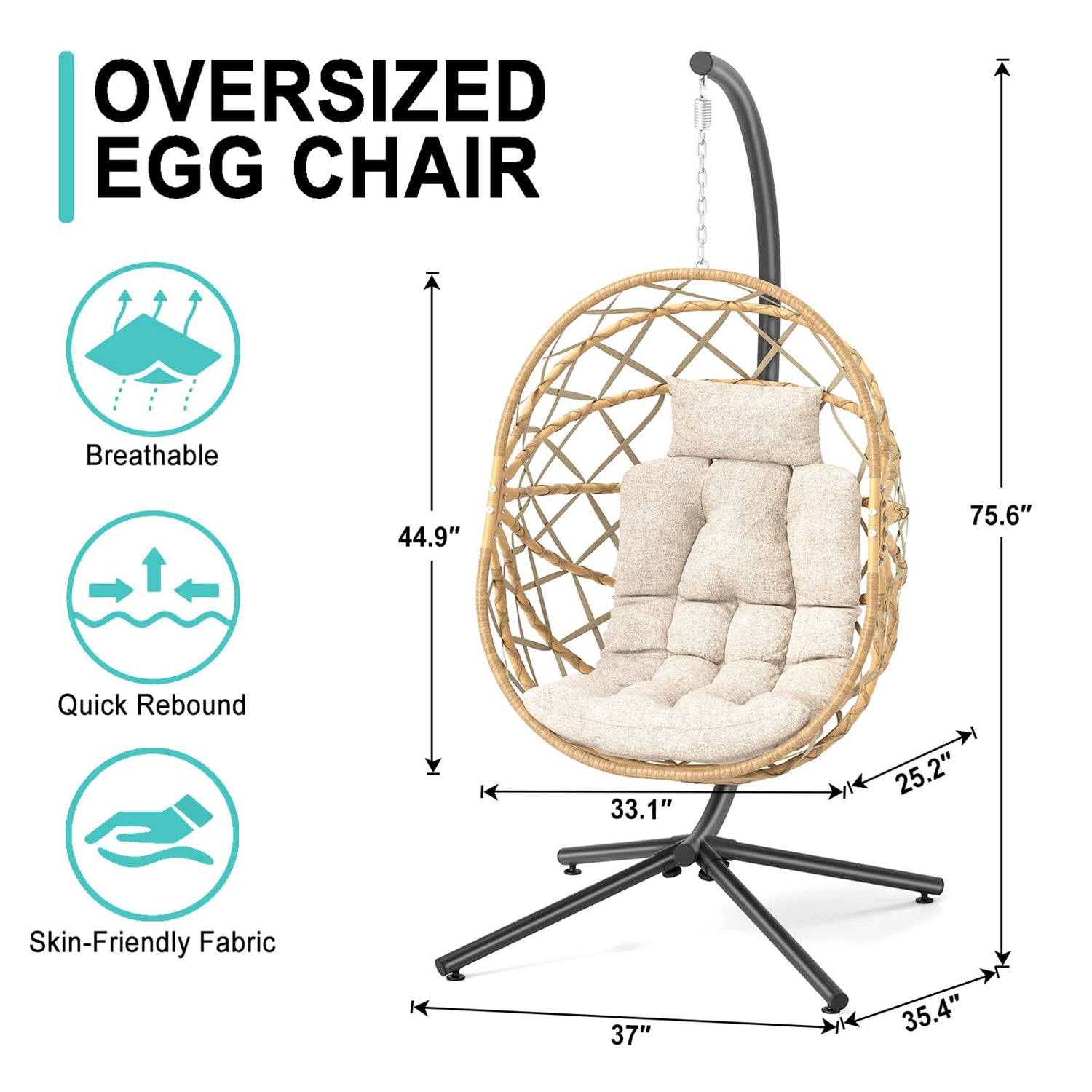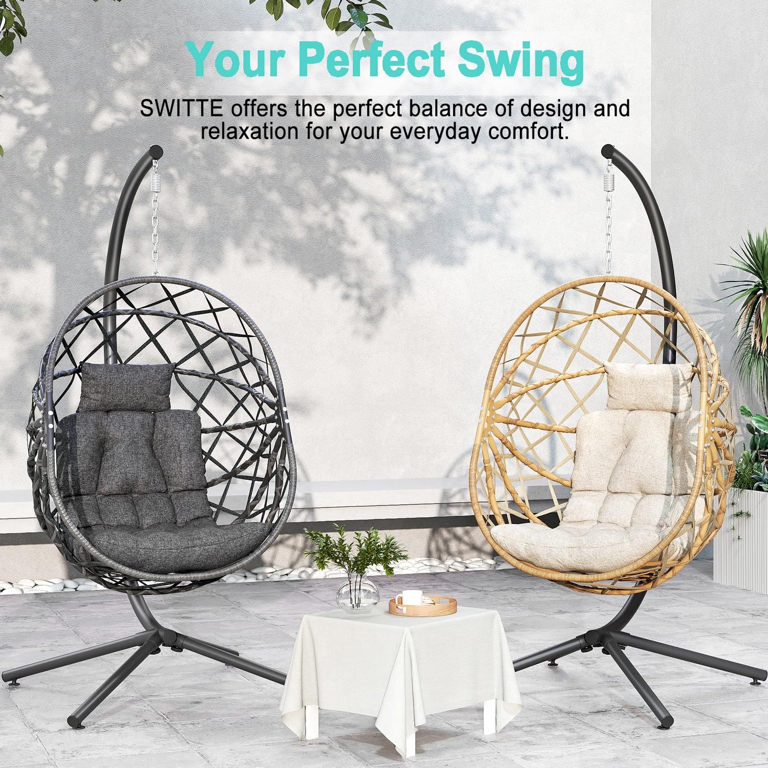 - 【OVERSIZED EGG SWING】:SWITTE hanging egg chair with stand has the advantage of more space. 37.4''(Width) *35.4''(Depth)size allows you to read, watch movies and relax comfortably.