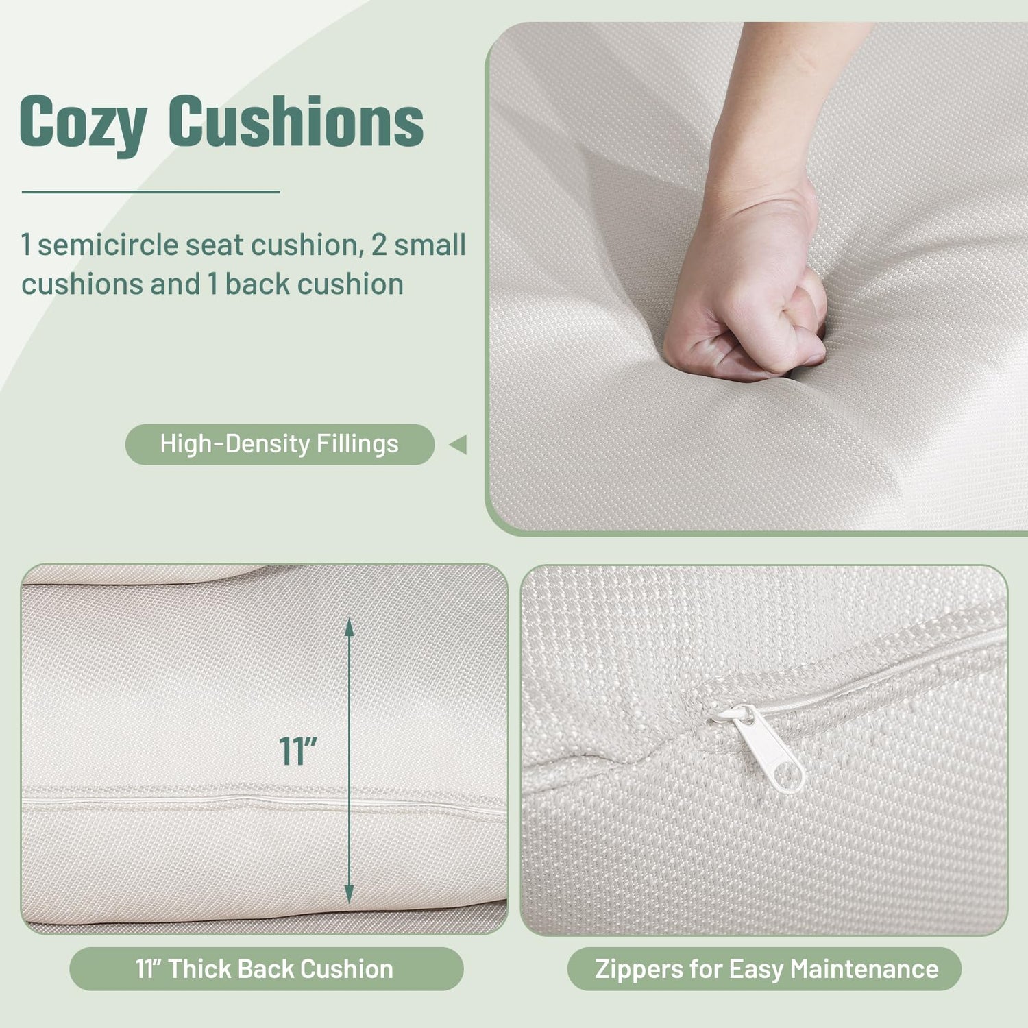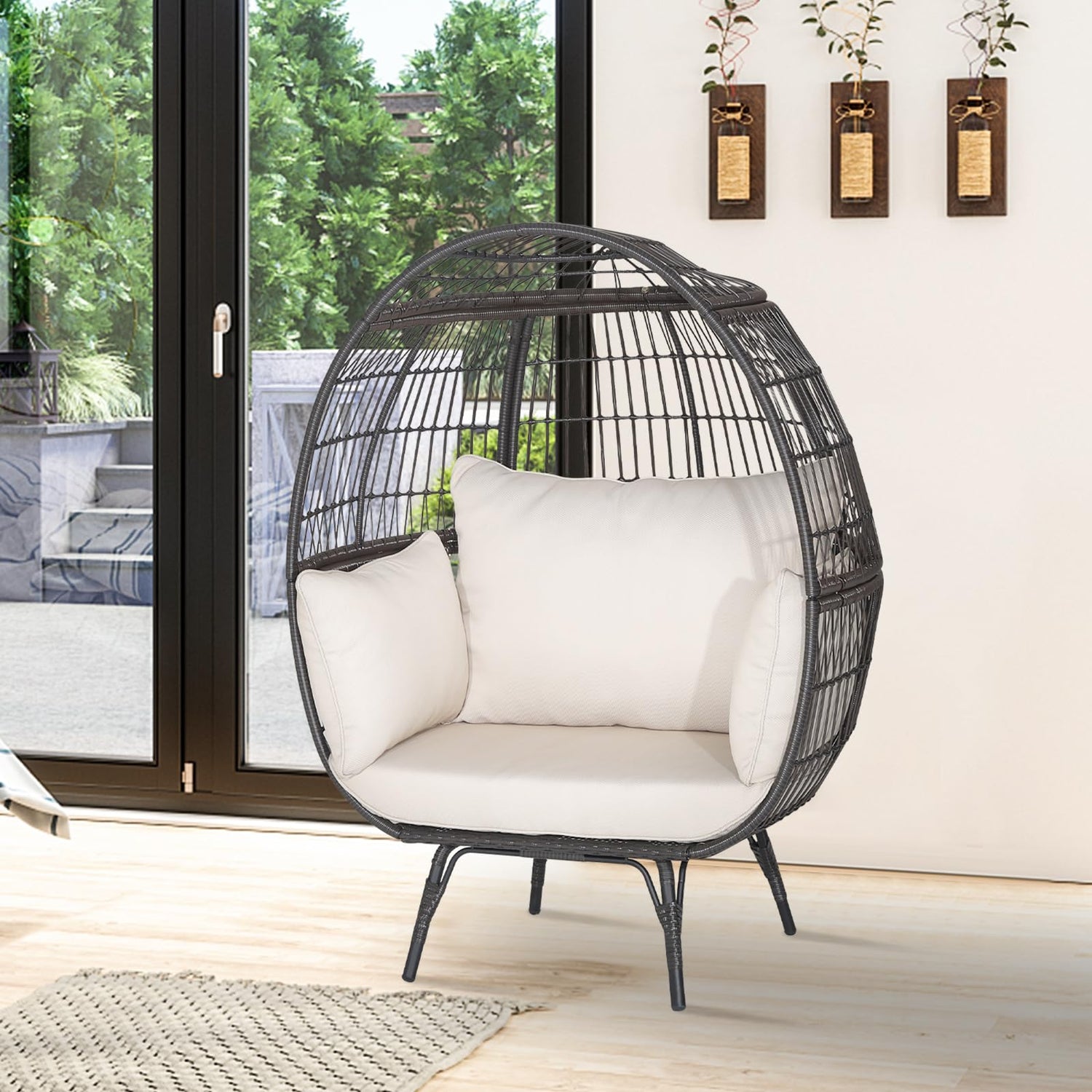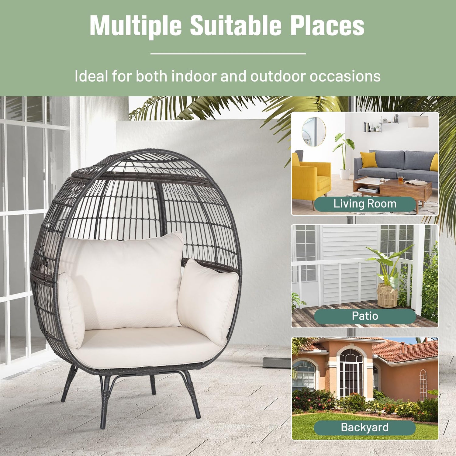 - Cozy Cushions for More Comfort: Equipped with 1 semicircle seat cushions, 2 small cushions and 1 back cushion with high-density fillings, the seat of this rattan egg chair is much cozier and softer to sit. Plus, zippers for easy maintenance and removal of cushion covers offer more convenience to you.